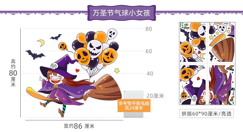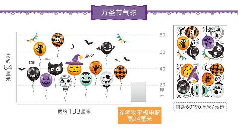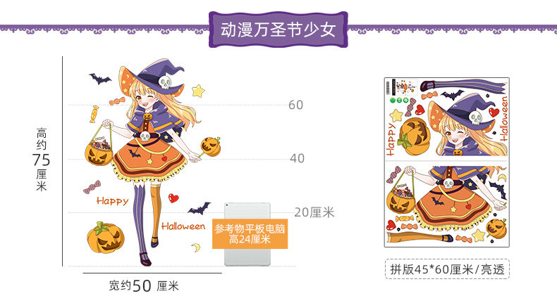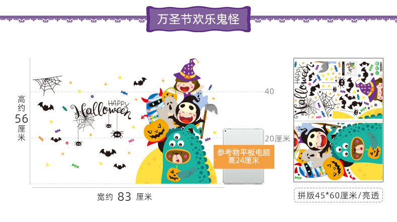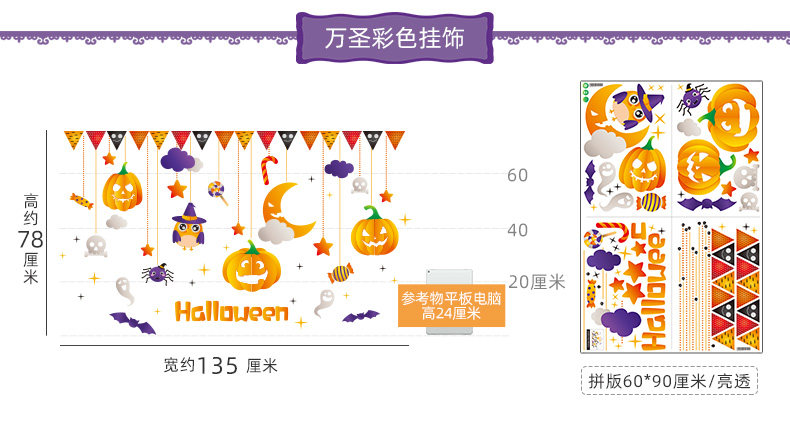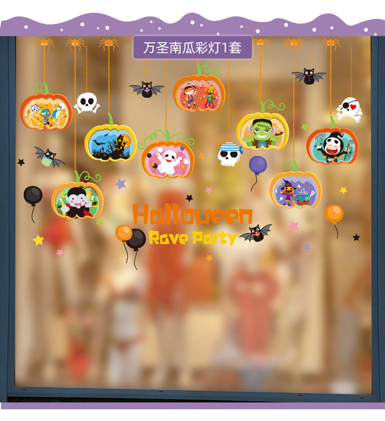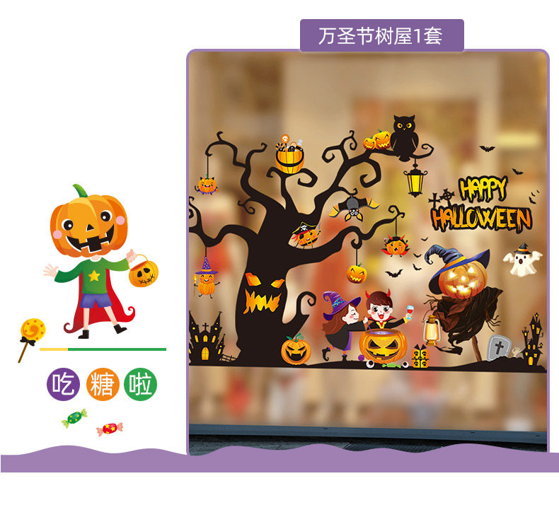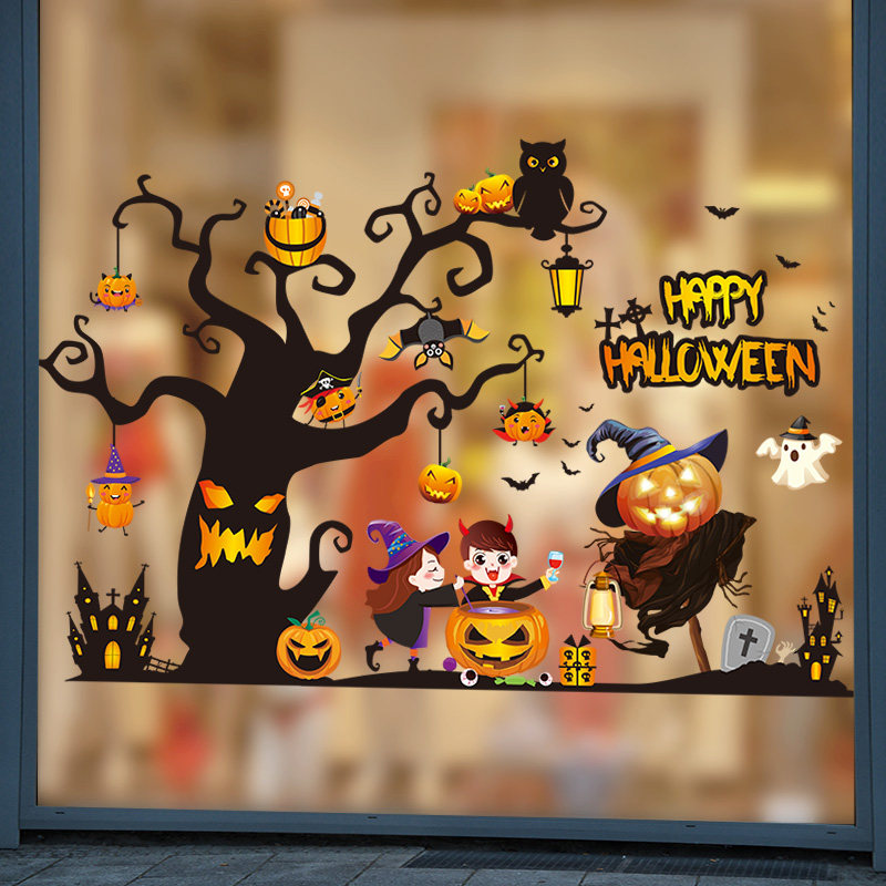 Самоклеющаяся наклейка на стену, стеклянный тыквенный фонарь, xэллоуин