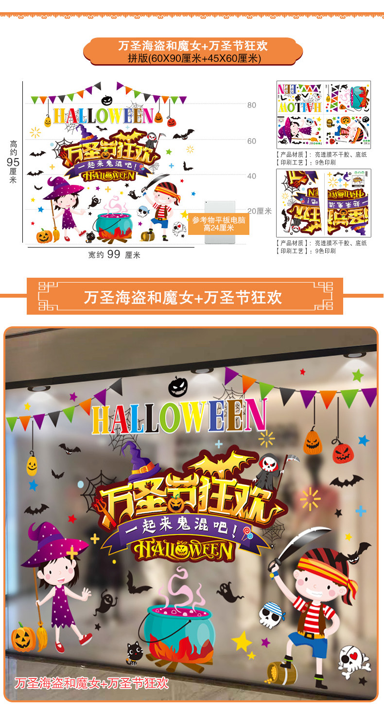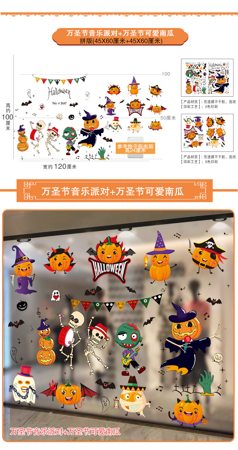 Тыквенный фонарь, декор, стеклянная оконная наклейка, детские наклейки, аксессуар, xэллоуин