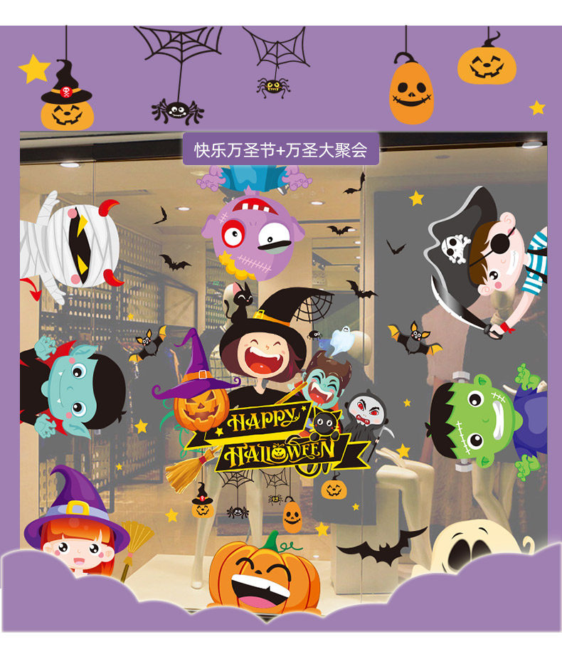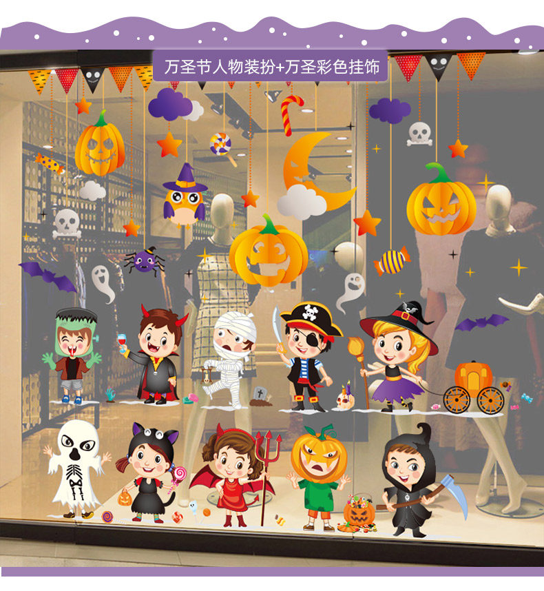 Детский тыквенный фонарь, декор, стеклянная оконная наклейка, xэллоуин, наряжаться