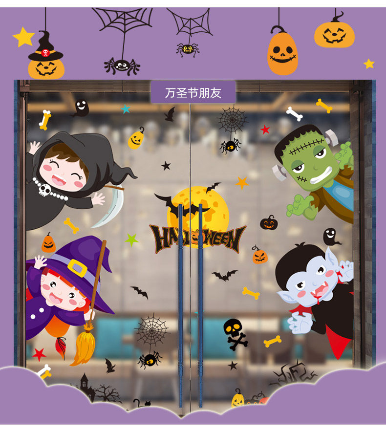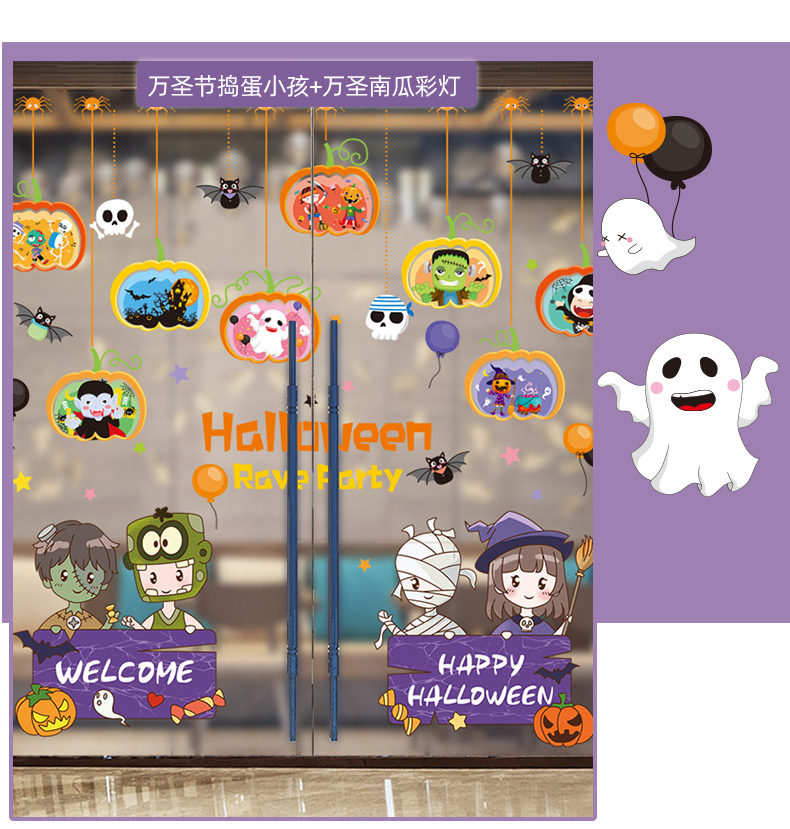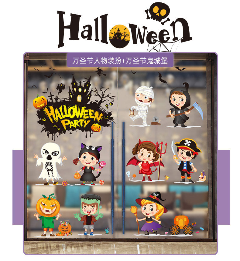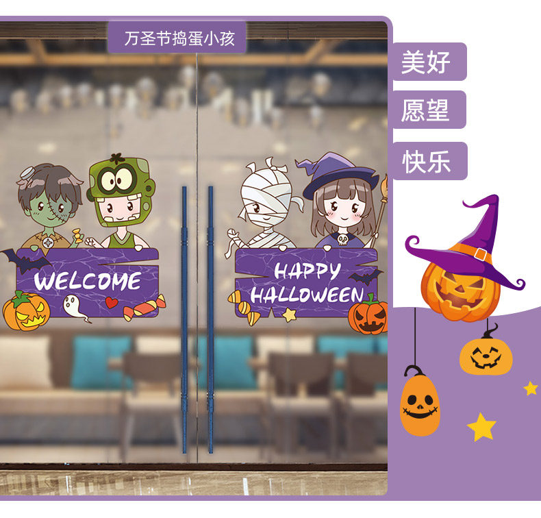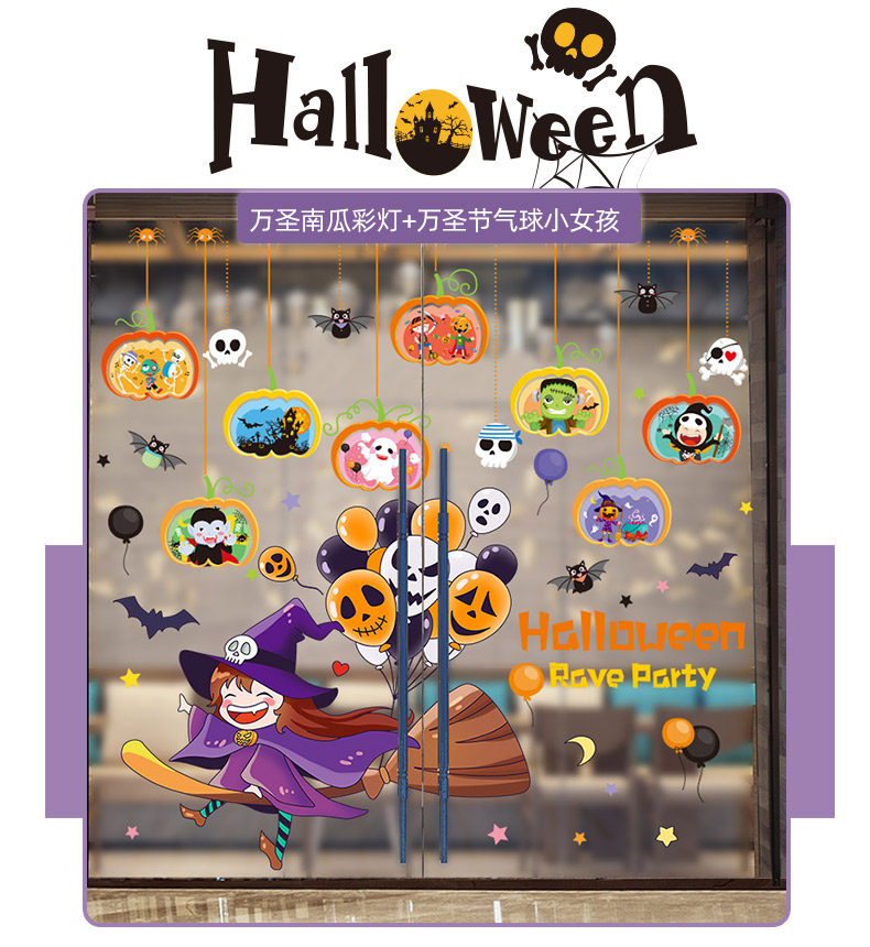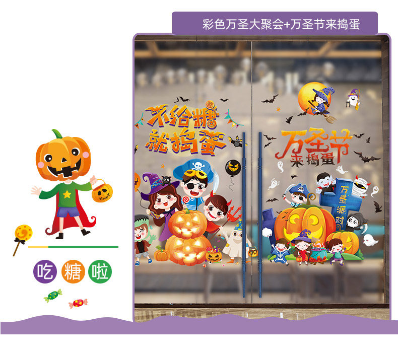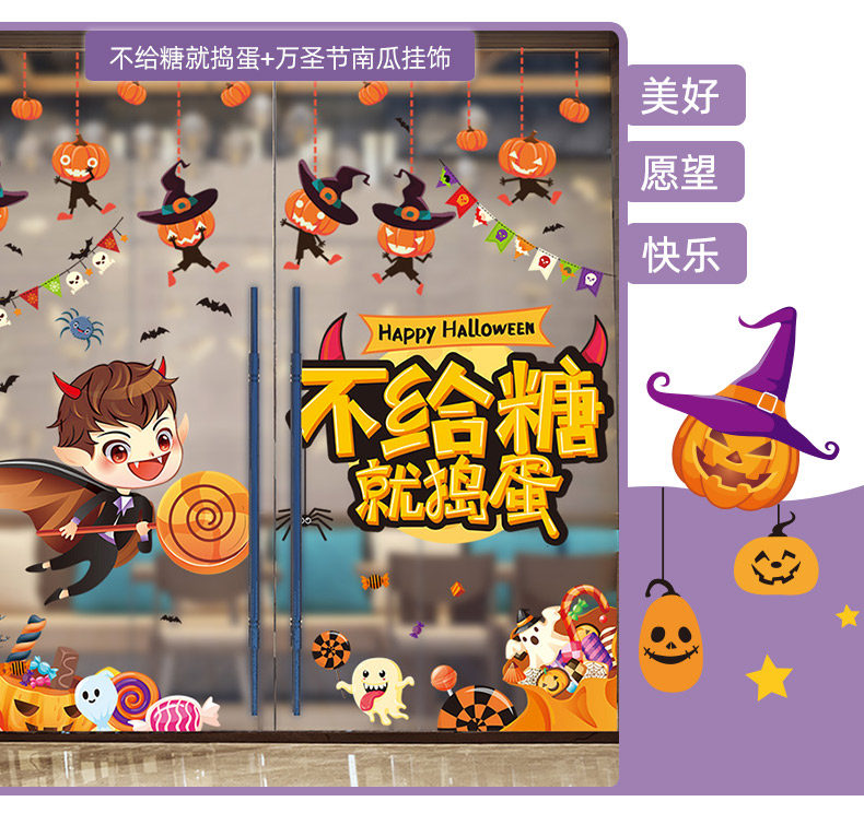 Стеклянная оконная наклейка, игрушка, тыквенный фонарь, xэллоуин