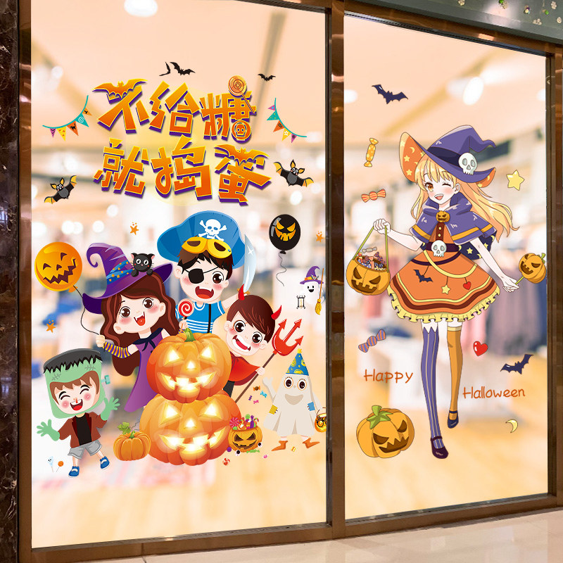 Атмосферный детский стеклянный тыквенный фонарь, оконная наклейка, xэллоуин, подарок на день рождения