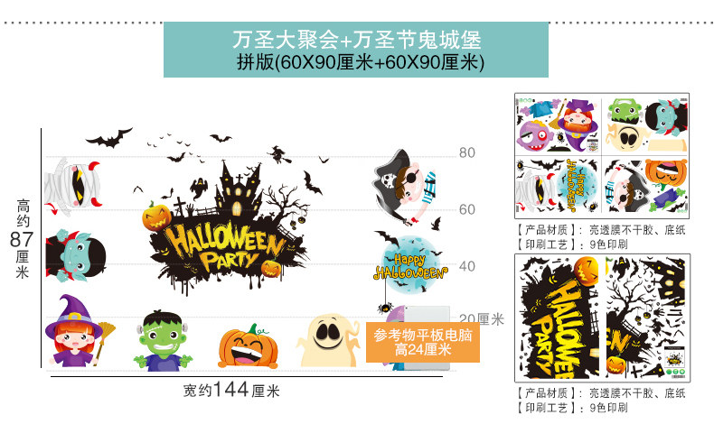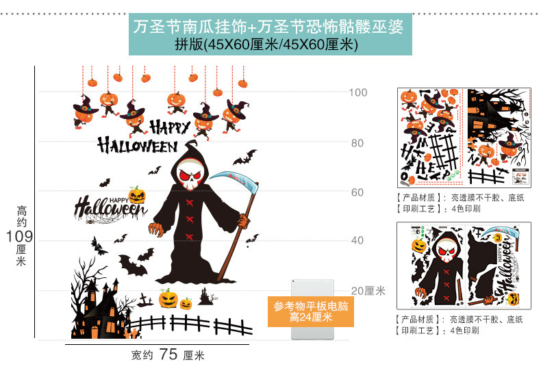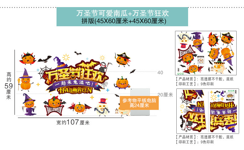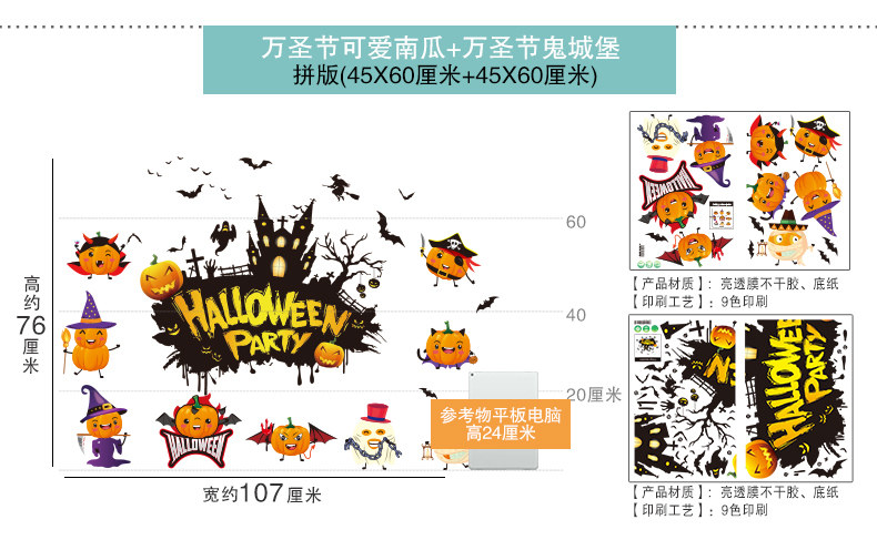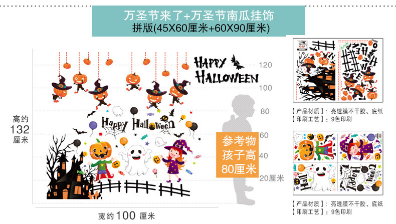 Тыквенный фонарь, украшение, оконная наклейка, xэллоуин