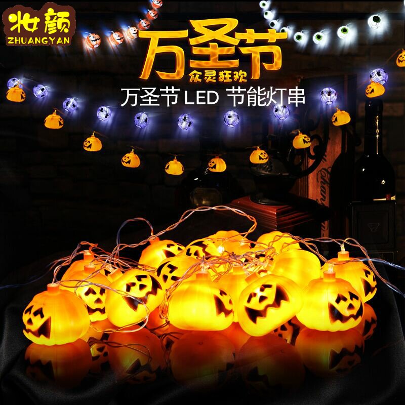 Светящаяся гирлянда из тыквы на Хэллоуин, гирлянда с черепом, гирлянда из тыквы, фонарь для украшения бара, реквизит, макет сцены