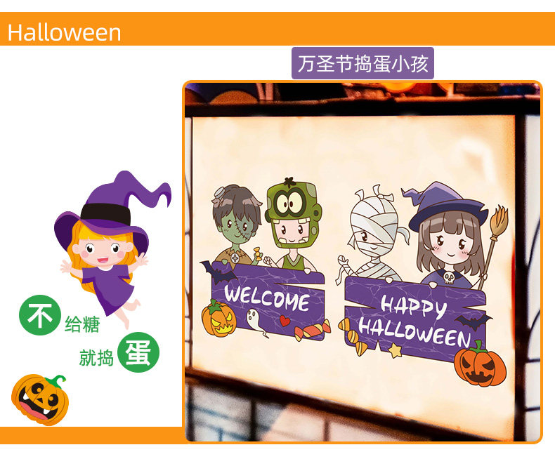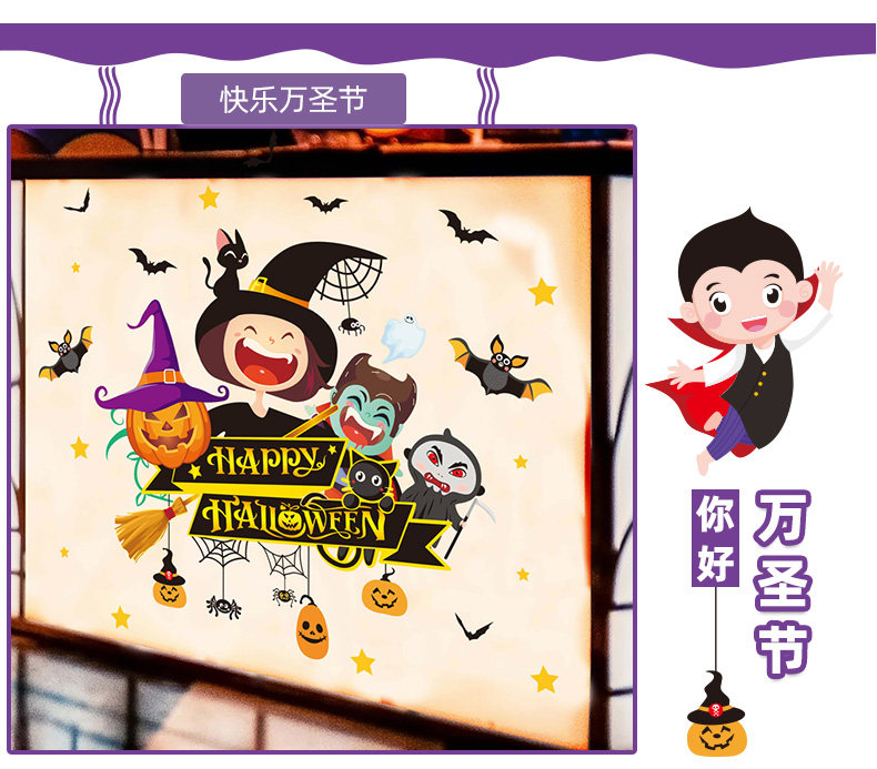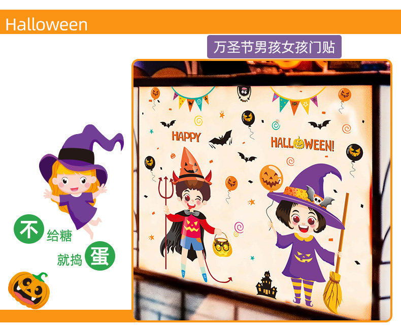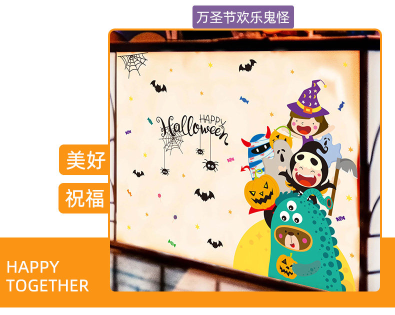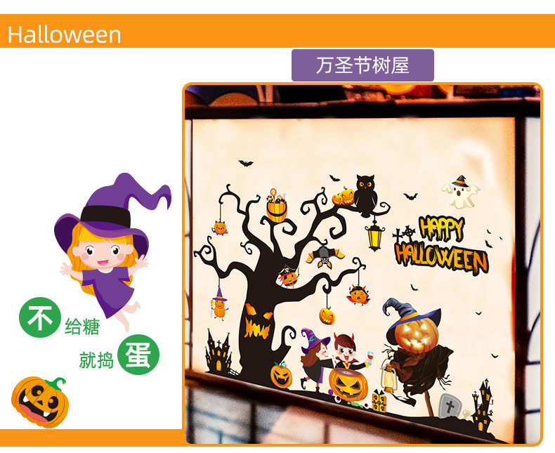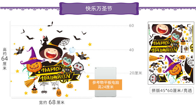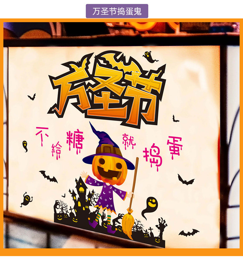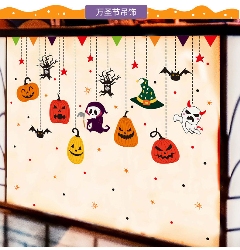 Детская игрушка, тыквенный фонарь, декор, стеклянная оконная наклейка, наклейки, xэллоуин, наряжаться
