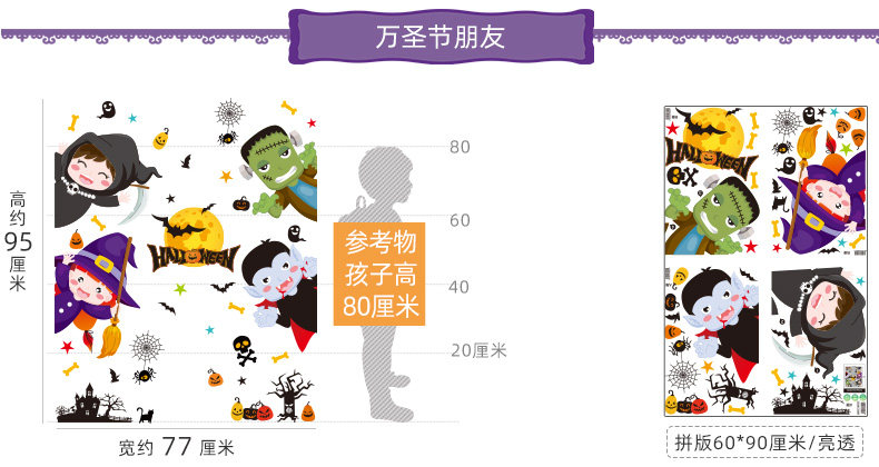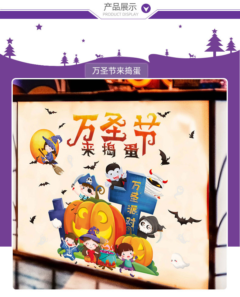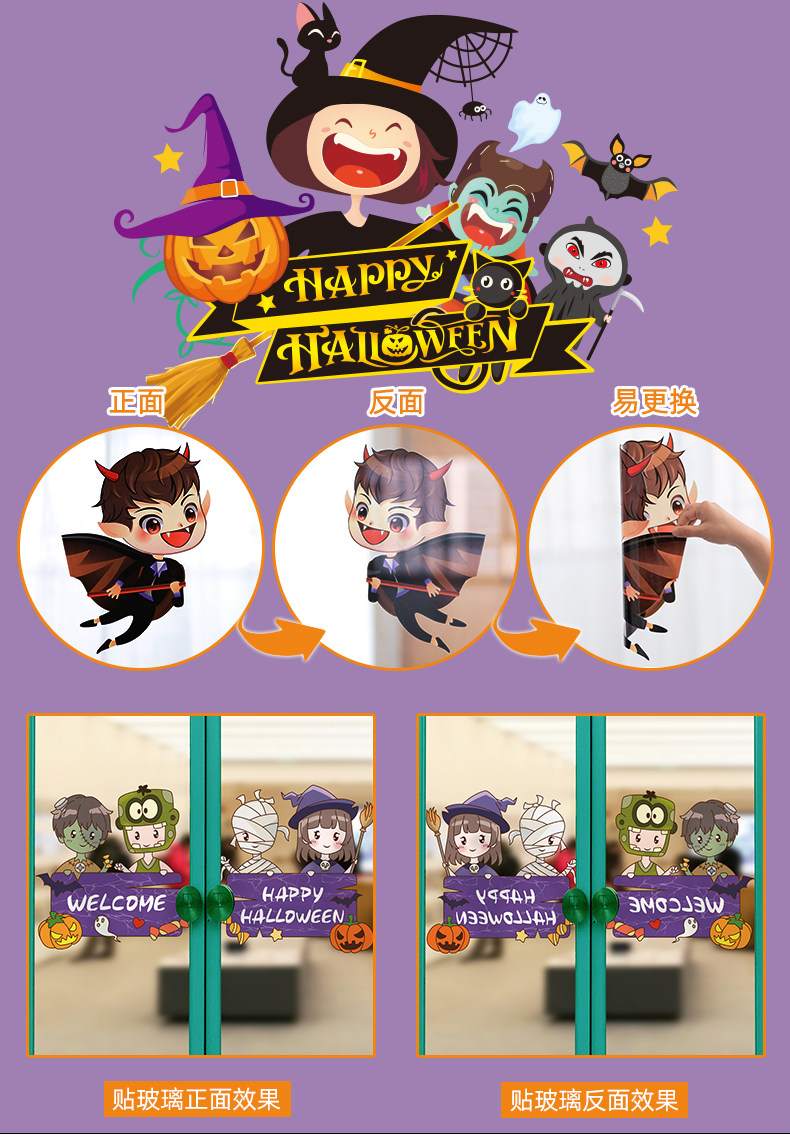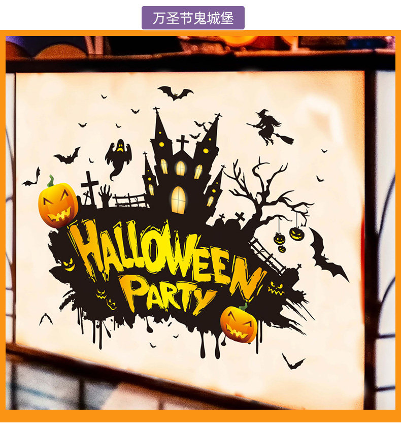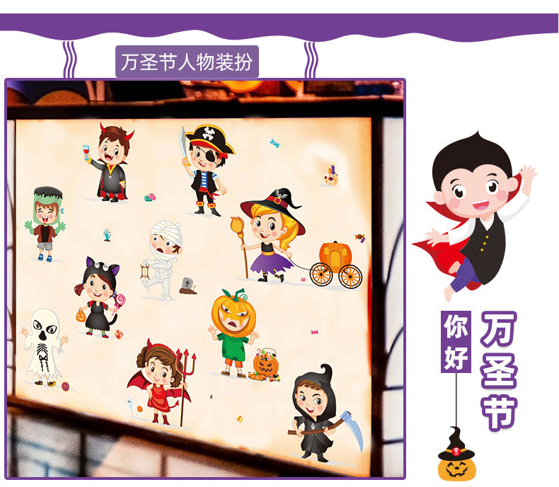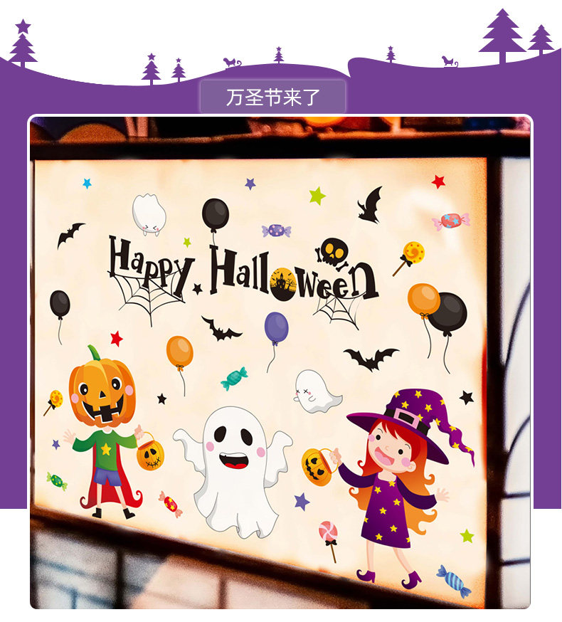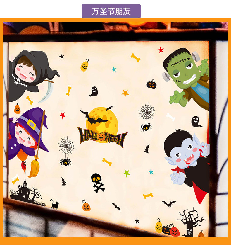 Детская игрушка, тыквенный фонарь, декор, стеклянная оконная наклейка, наклейки, xэллоуин, наряжаться