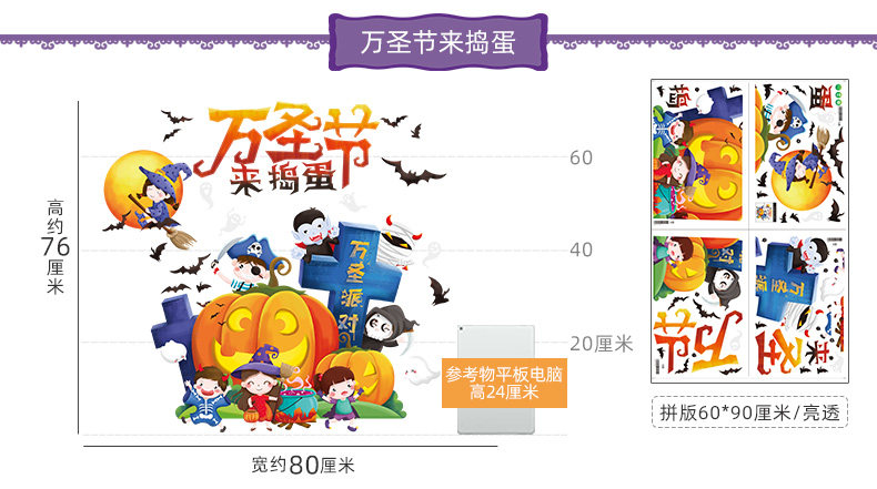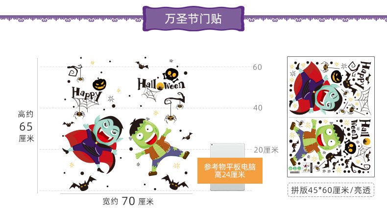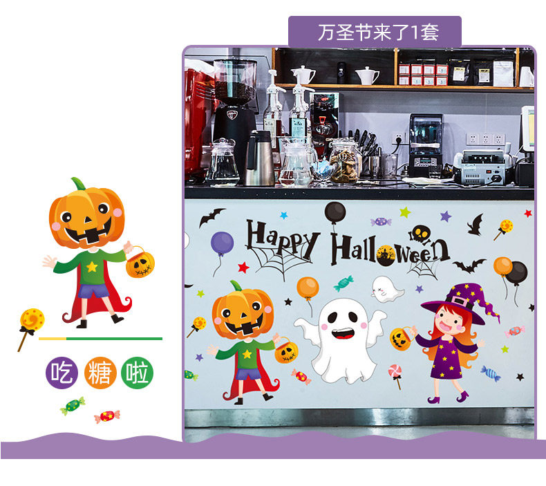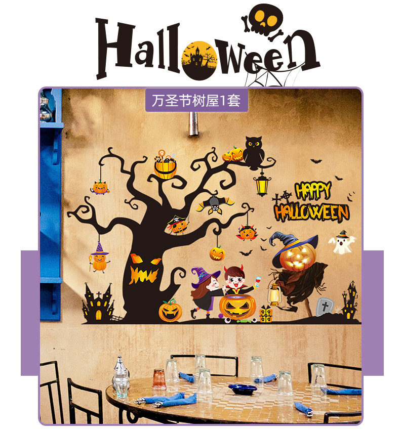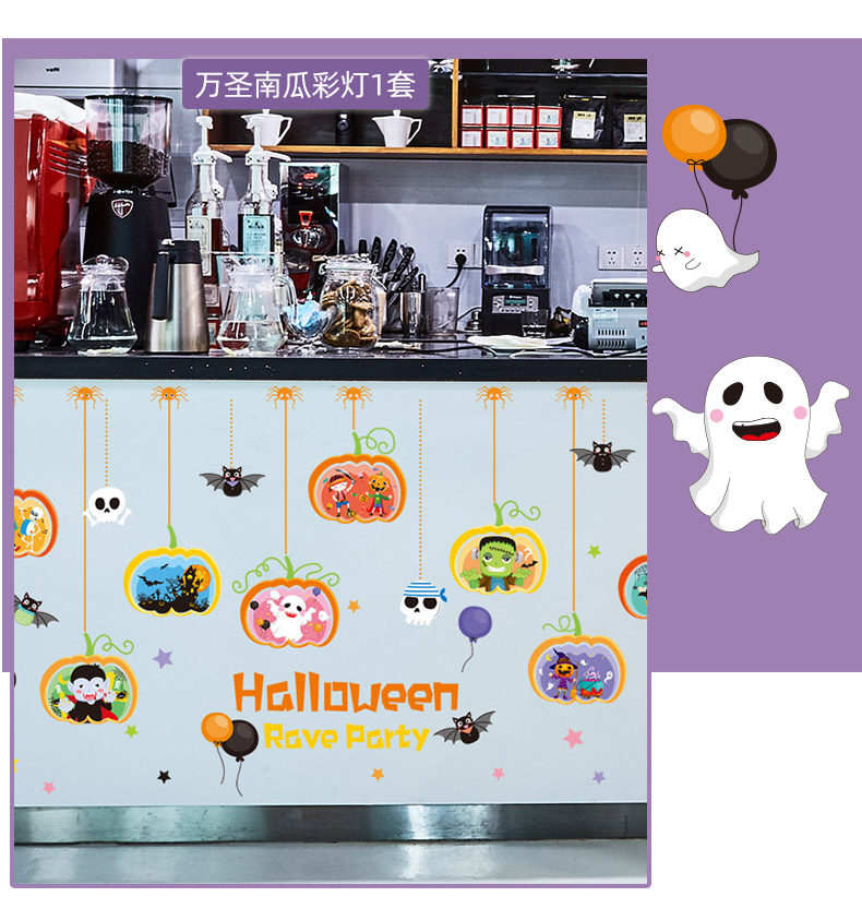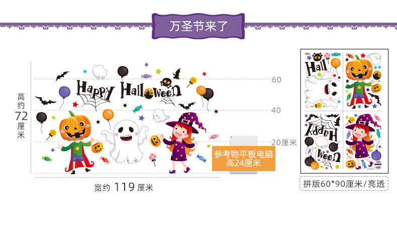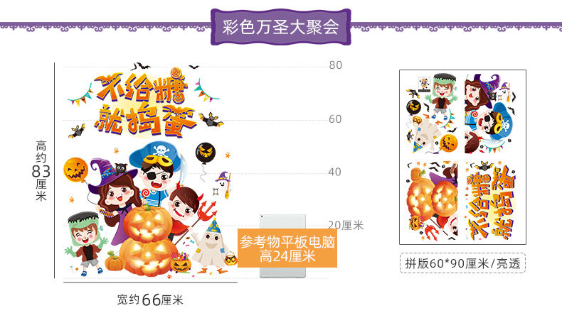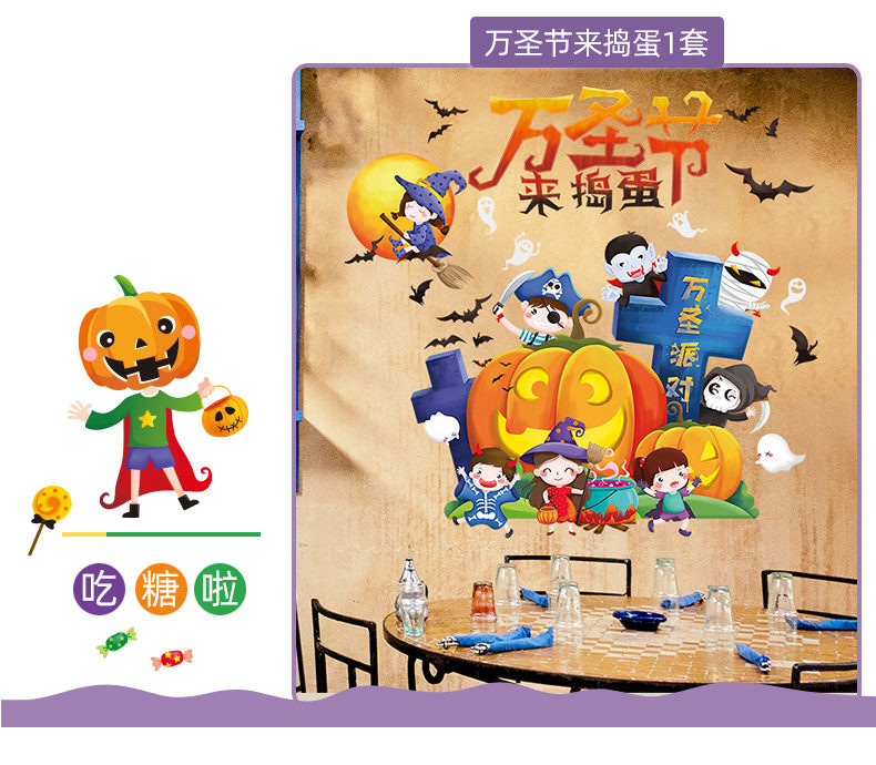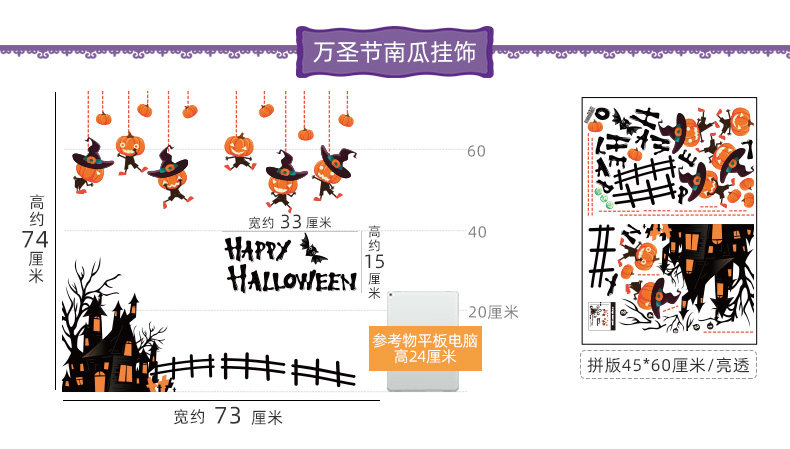 Аксессуар, тыквенный фонарь, атмосферная оконная наклейка, xэллоуин, DIY, наряжаться