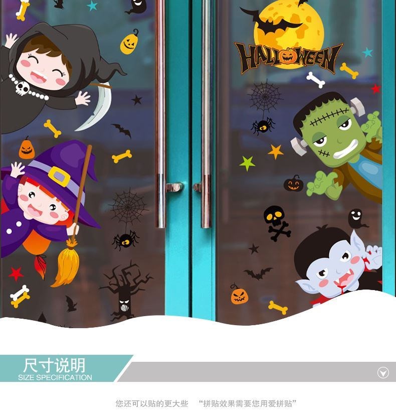 Настенное украшение для ногтей, износостойкая стеклянная наклейка, европейский стиль, принт, xэллоуин