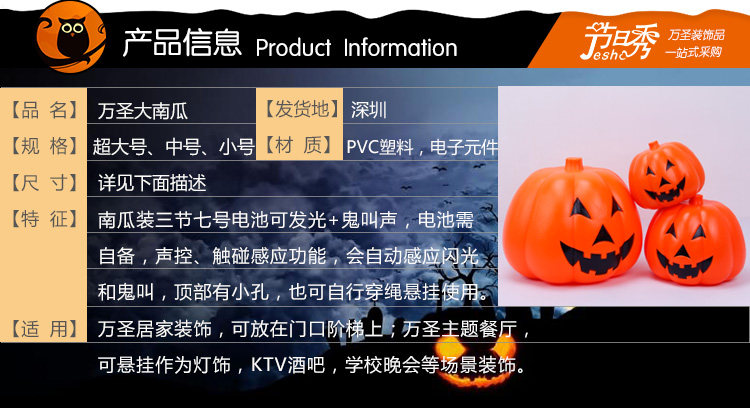 Товары для украшения Хэллоуина тыквенный фонарь призрачный свет голосовой пластиковый светящийся призрачный крик негабаритные украшения сцены тыквенного бара