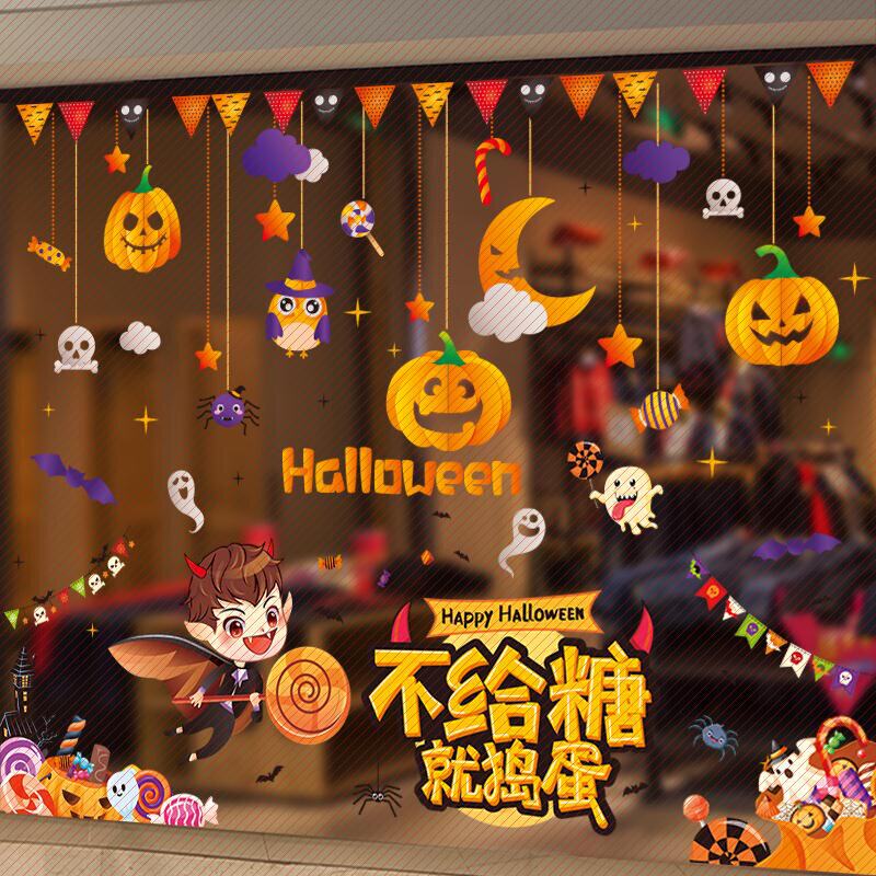Самоклеющиеся наклейки для гостиной, светильник, фонарь, аксессуар, оконная наклейка, xэллоуин