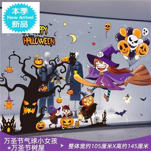 Хэллоуин Статические наклейки декоративные K -Грейд -магазин окна стеклянные дверные наклейки на стикеры праздничной макет школьной школьной стены.