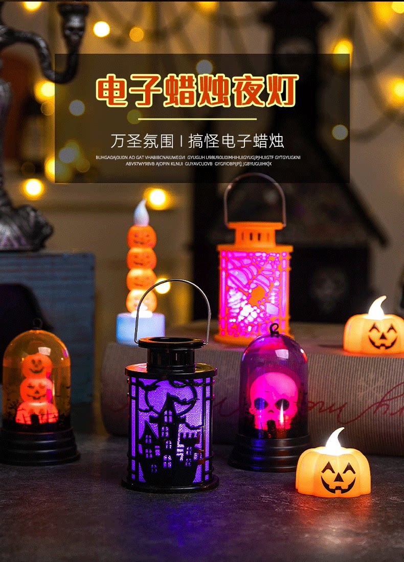 Электронная свеча, разноцветный настольный тыквенный фонарь, декор, xэллоуин, подходит для караоке-баров