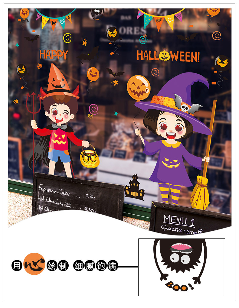 Стеклянная оконная наклейка для мальчиков и девочек, декор, xэллоуин, наряжаться
