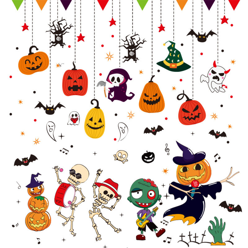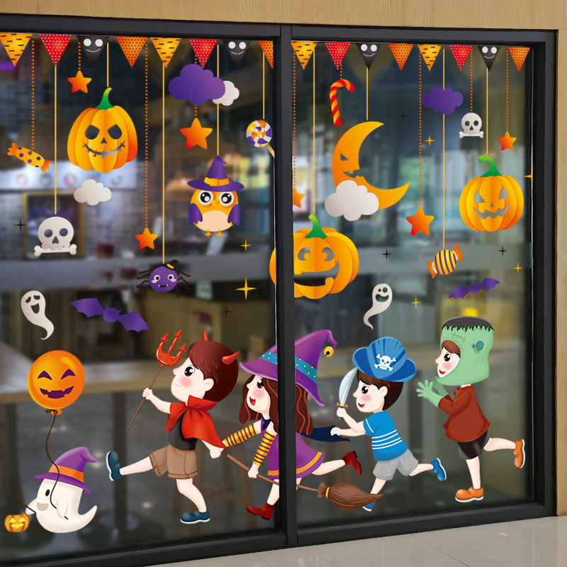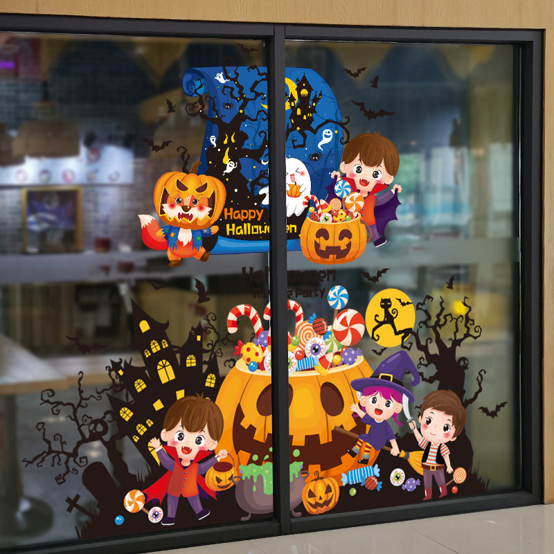 Детский аксессуар для детского сада, стеклянный тыквенный фонарь, оконная наклейка, xэллоуин