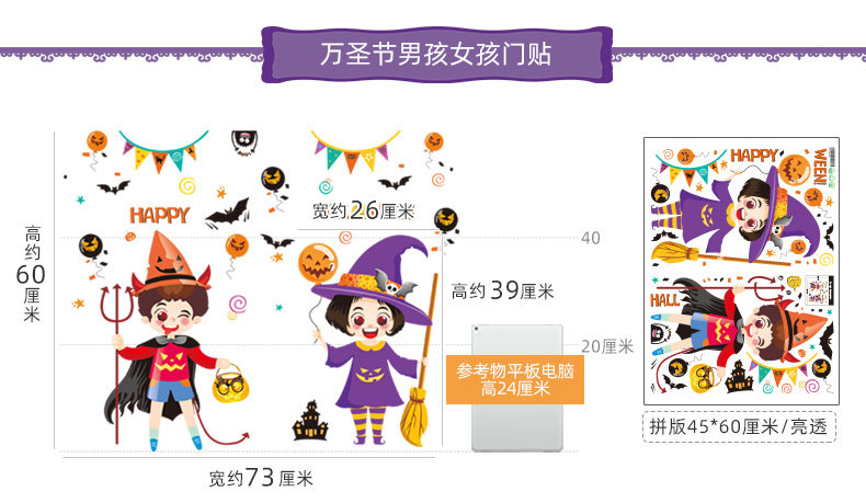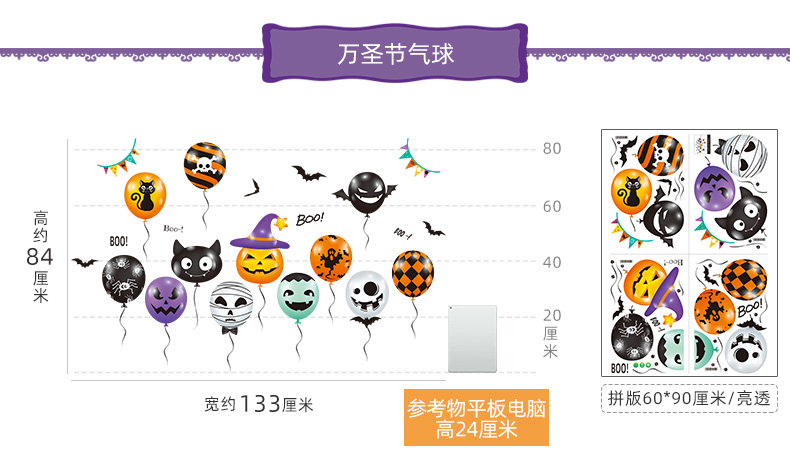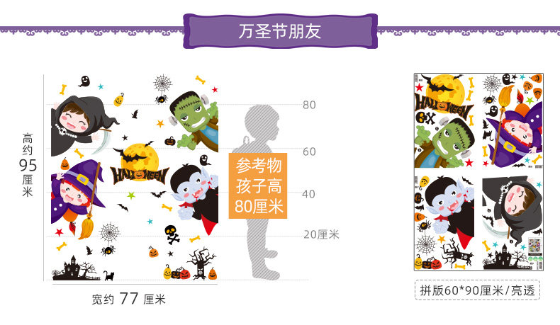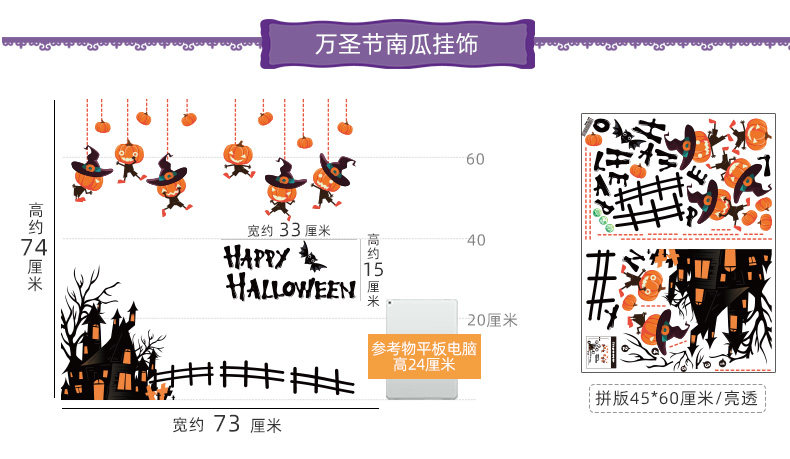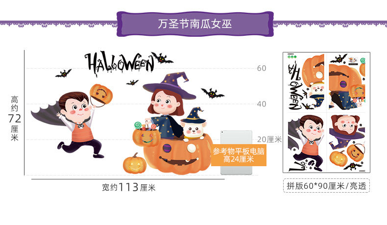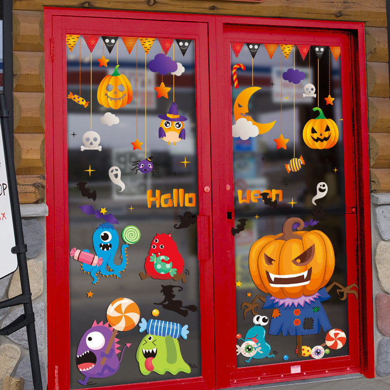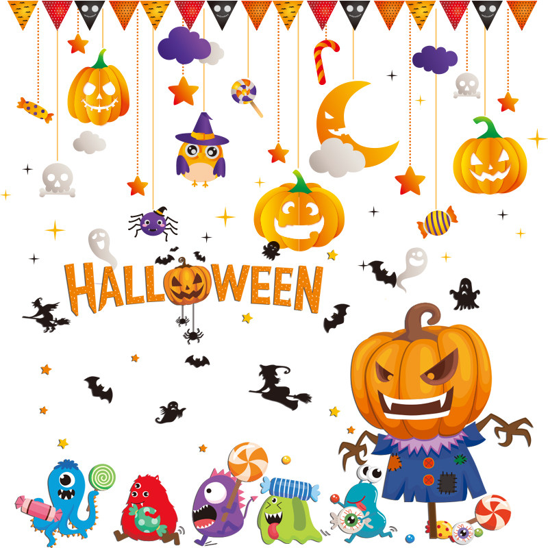 Детский декор, тыквенный фонарь, стеклянная атмосферная оконная наклейка, подвеска, xэллоуин, наряжаться