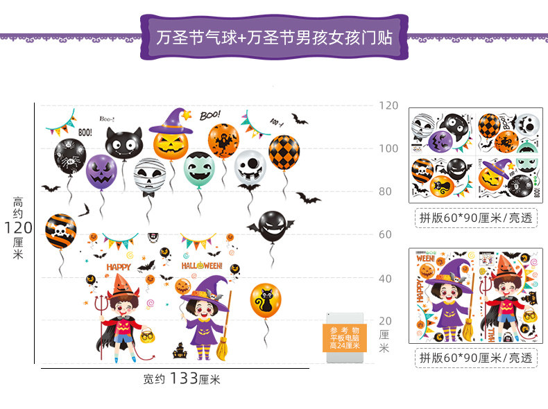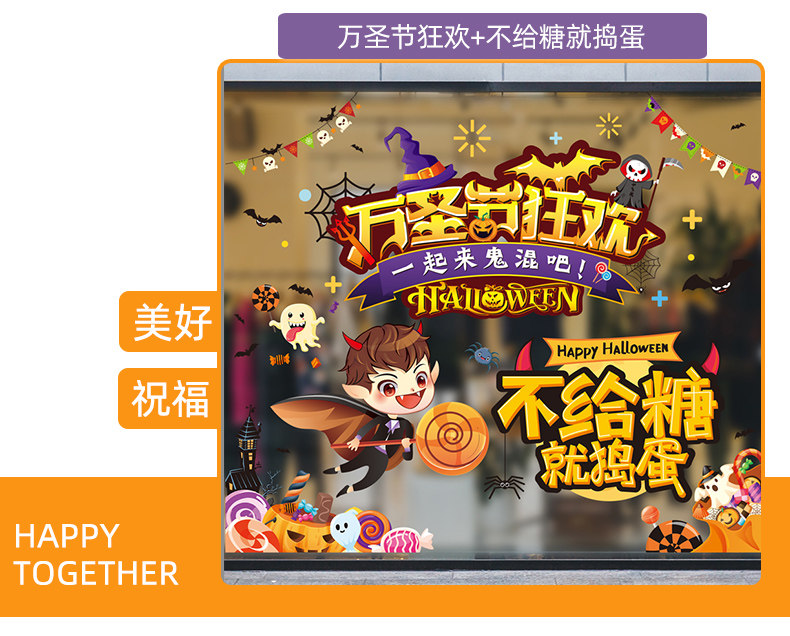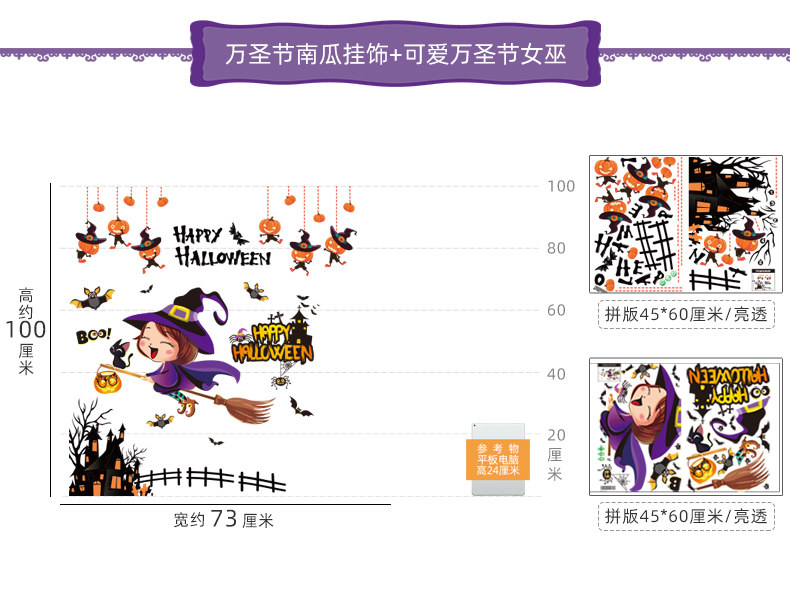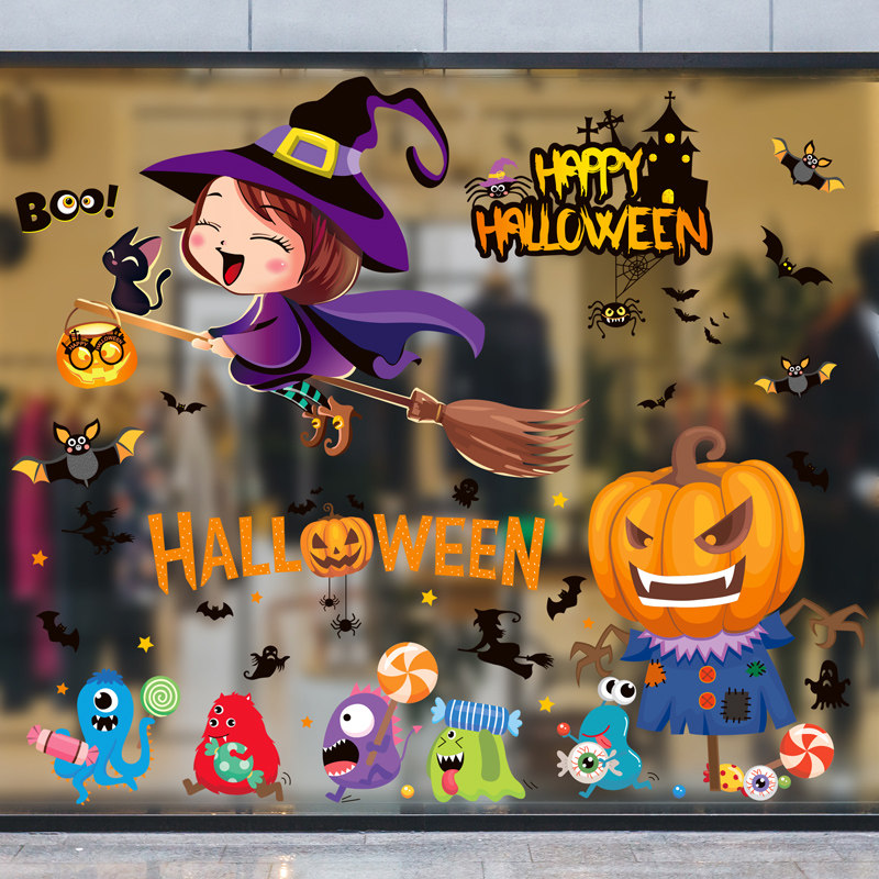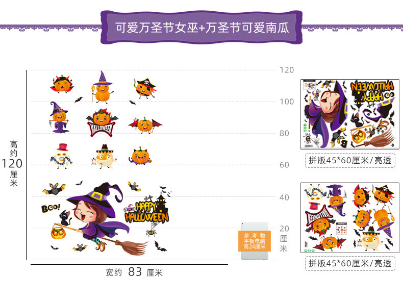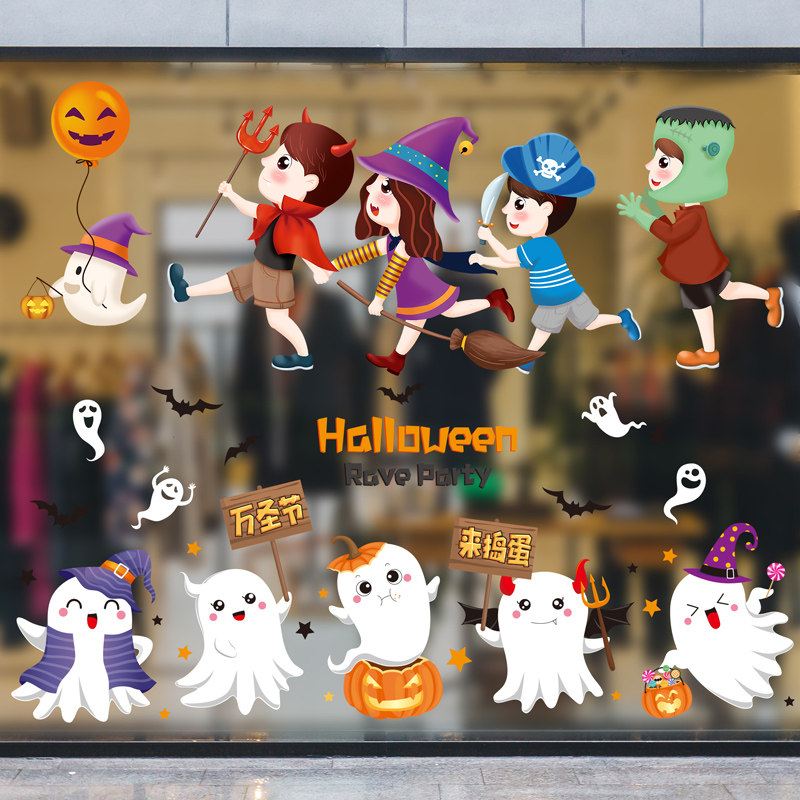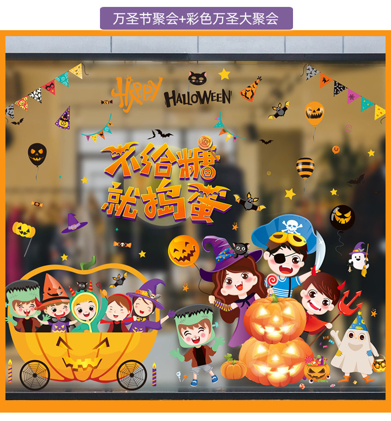 Аксессуар, детский тыквенный фонарь, стеклянная оконная наклейка, xэллоуин, детская одежда, наряжаться