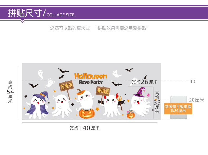 Призрачные наклейки, декор, стеклянная оконная наклейка, xэллоуин, принт, наряжаться