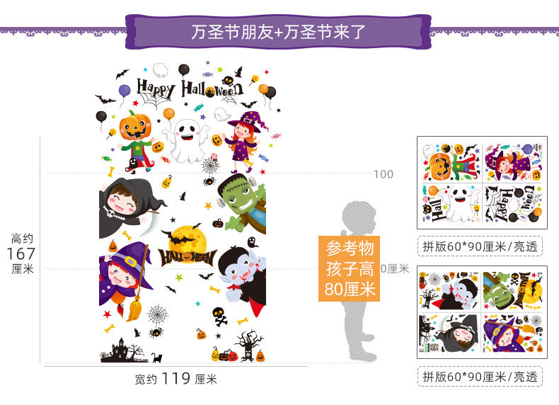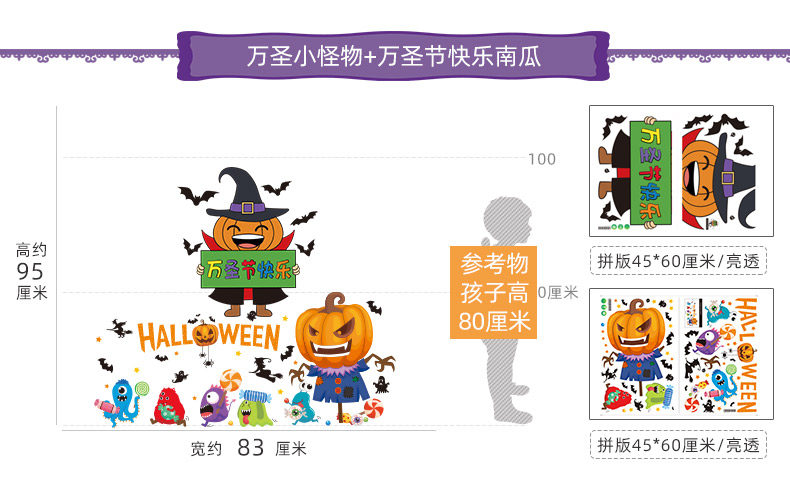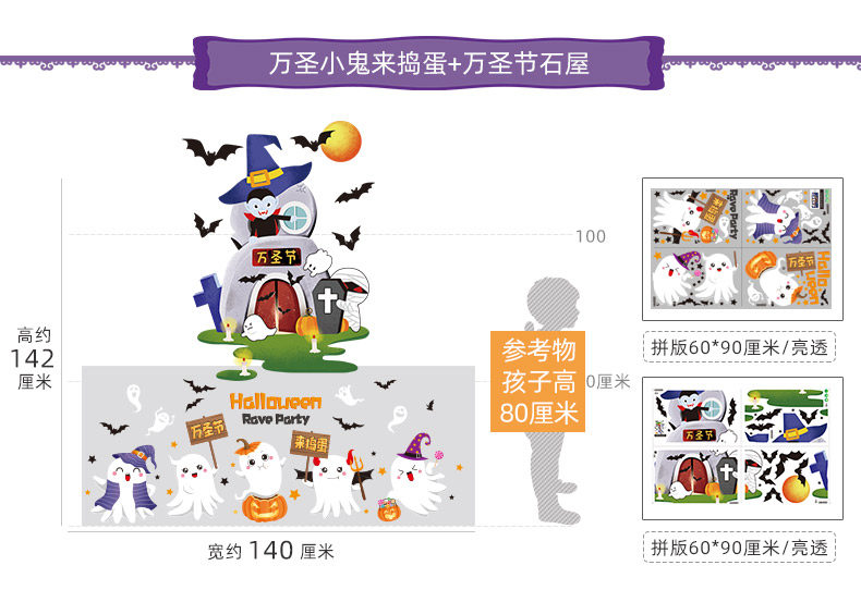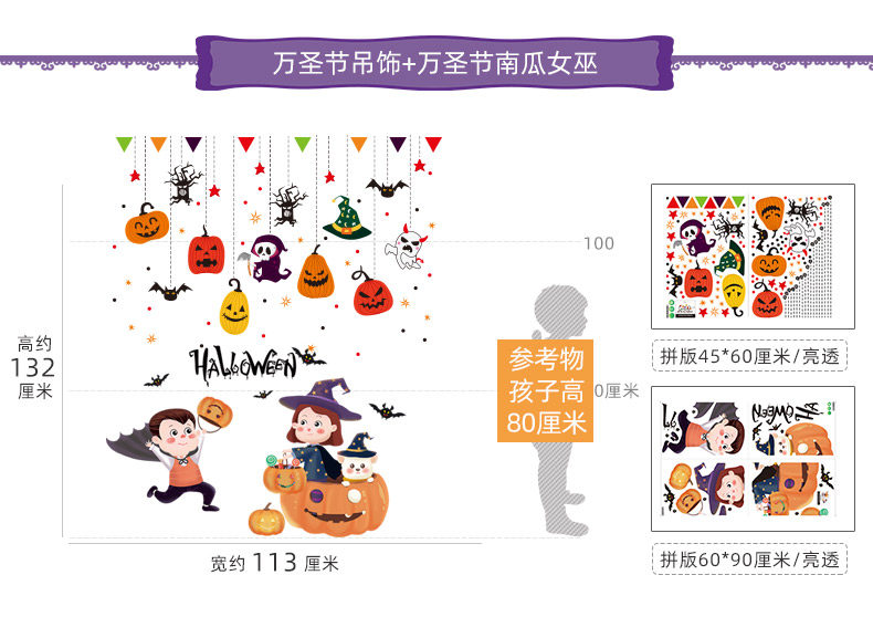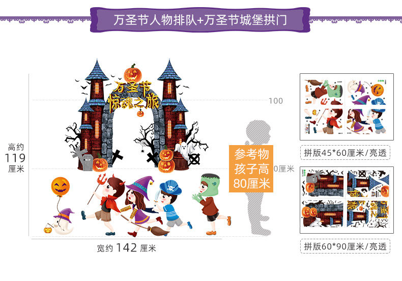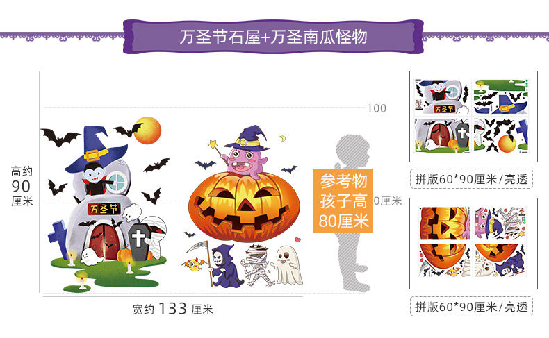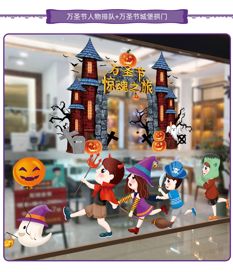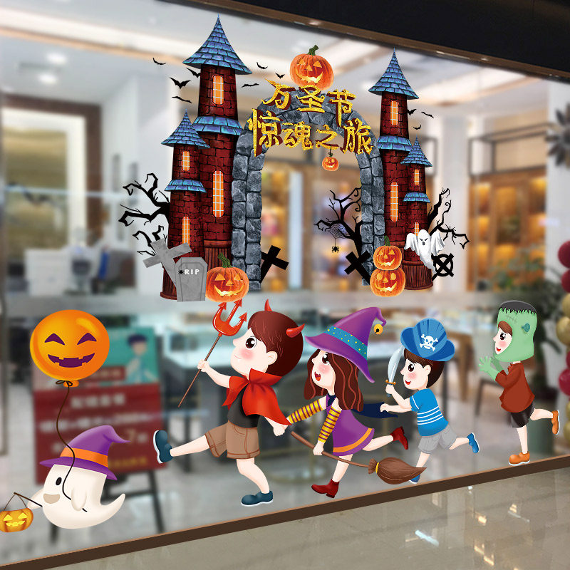 Аксессуар, стеклянный тыквенный фонарь, замок, оконная наклейка, xэллоуин, наряжаться