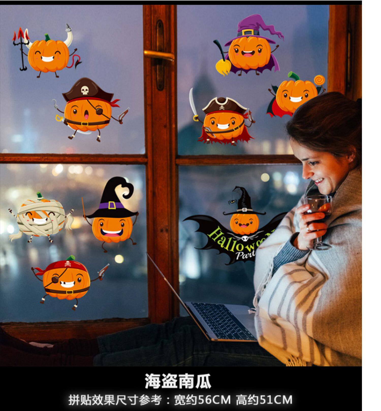 Стеклянный тыквенный фонарь, наклейки, оконная наклейка, xэллоуин