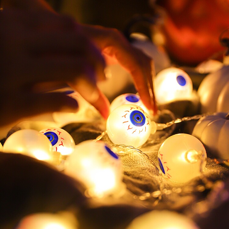 Декоративные гирлянды на Хэллоуин, реквизит для оформления сцены в квест-комнате Фестиваля призраков, тыквенные фонари, светящиеся глазные яблоки, подвески для глазных яблок