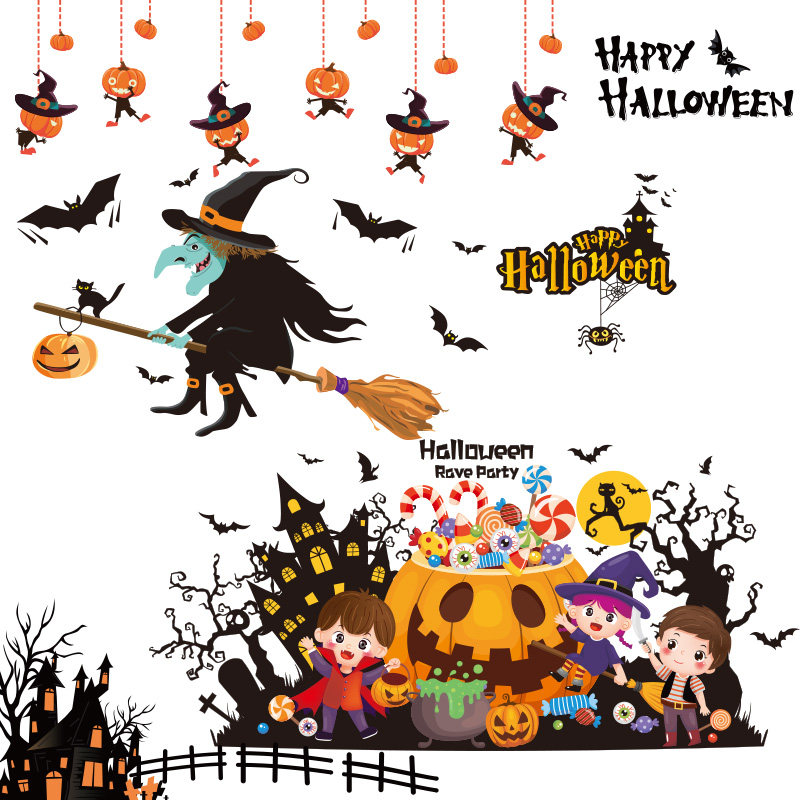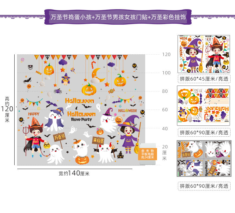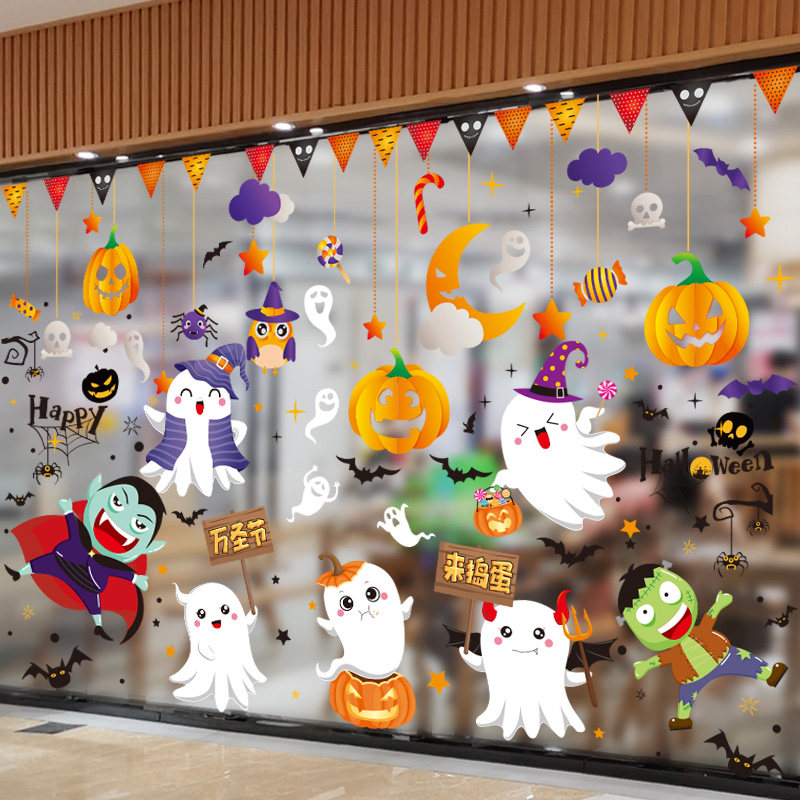 - Хэллоуин цветные аксессуары+наклейки на дверь Хэллоуин+Хэллоуин Маленькие призраки, чтобы доставить проблемы