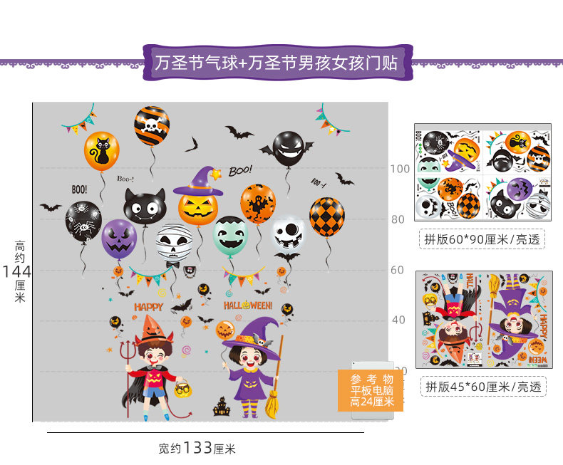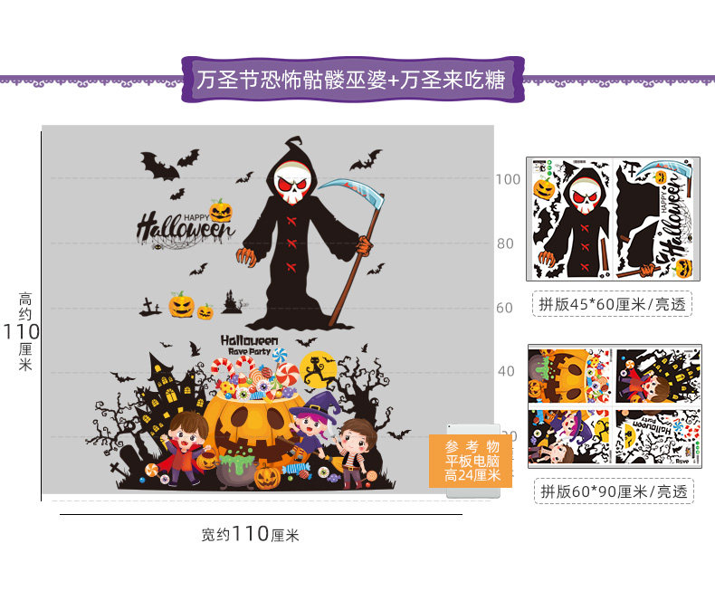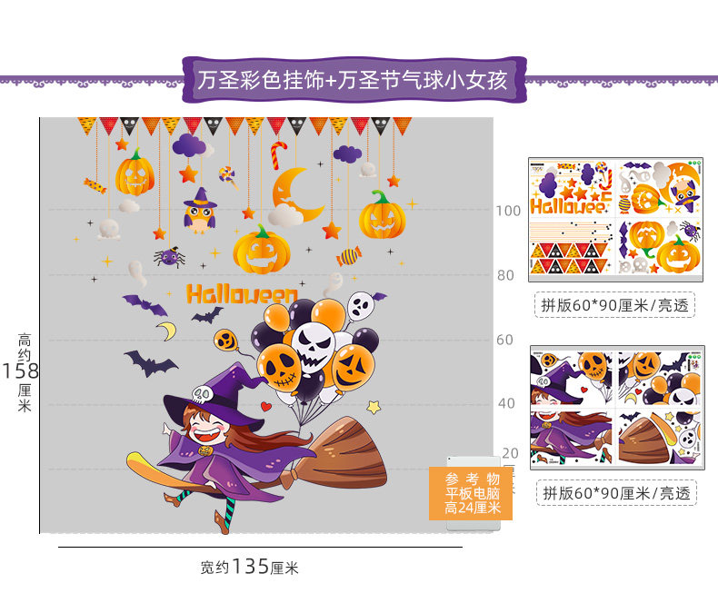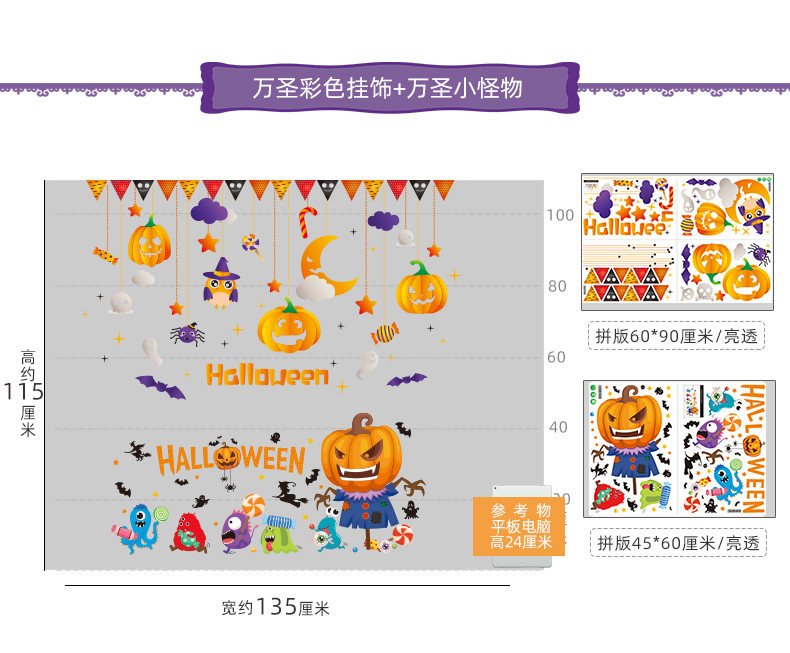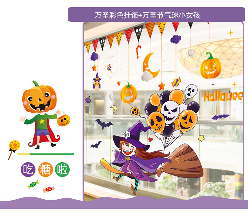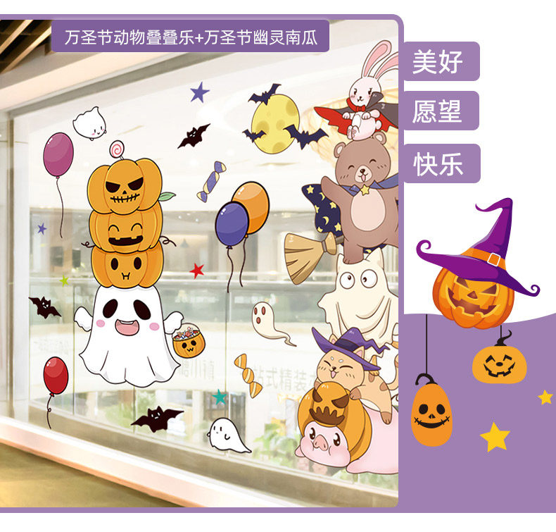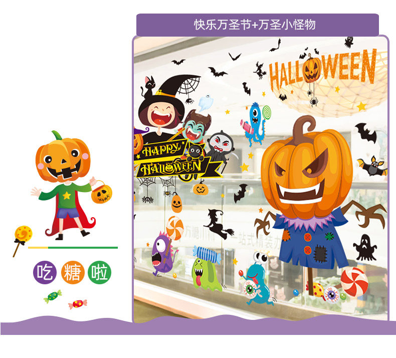 Аксессуар, стеклянная оконная наклейка, тыквенный фонарь, xэллоуин, наряжаться