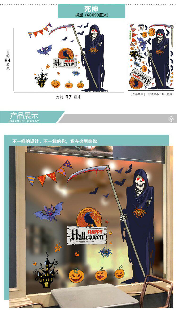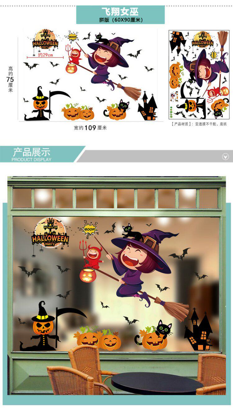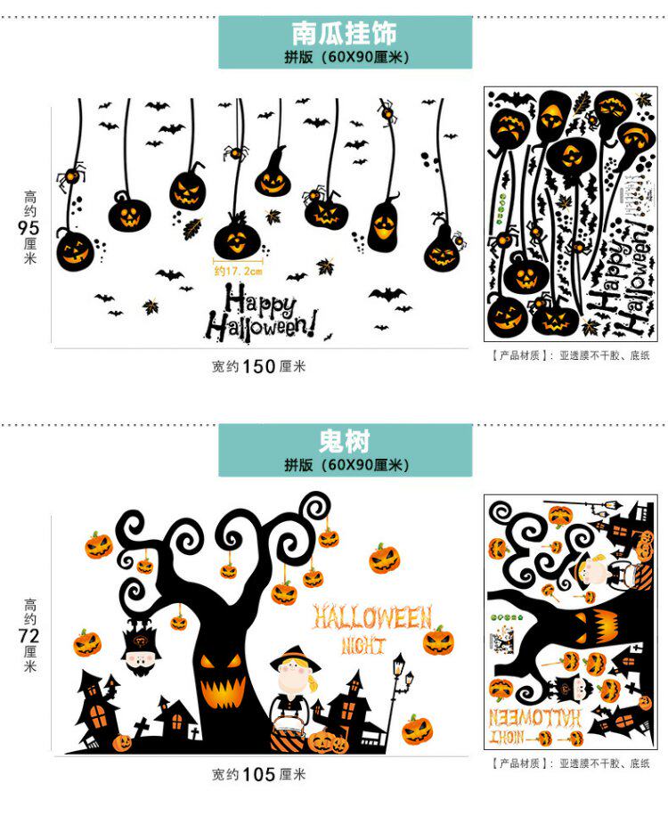 Детский тыквенный фонарь для спальни, стеклянная оконная наклейка на стену, xэллоуин