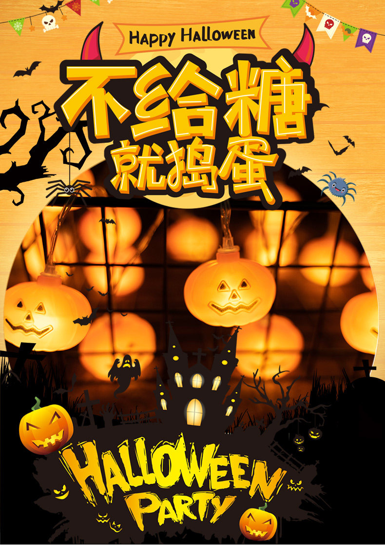 Хэллоуин тыква свет строка детские аксессуары светящиеся светодиодные фонари подвесные украшения бар КТВ украшения макет сцены реквизит