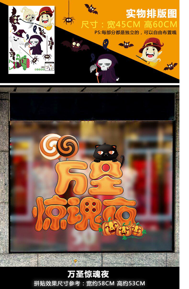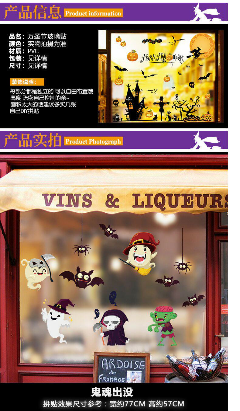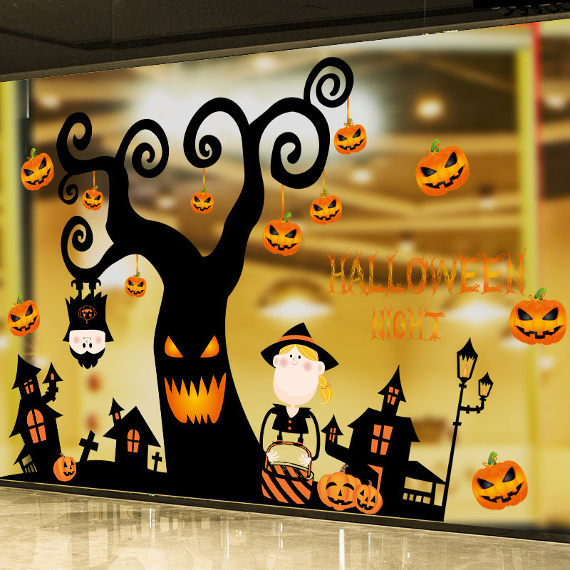 Стеклянная атмосферная самоклеющаяся наклейка для раннего возраста на стену, xэллоуин