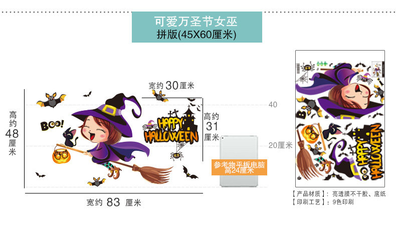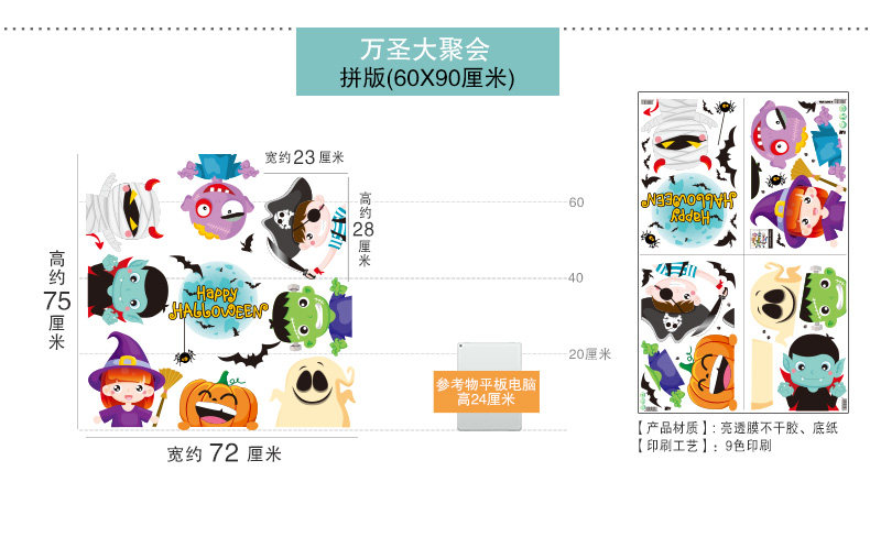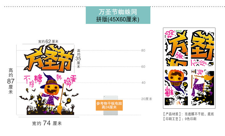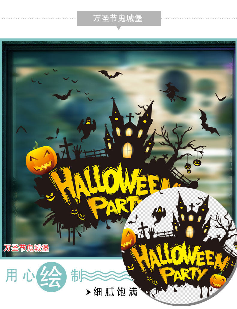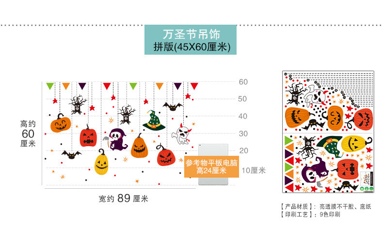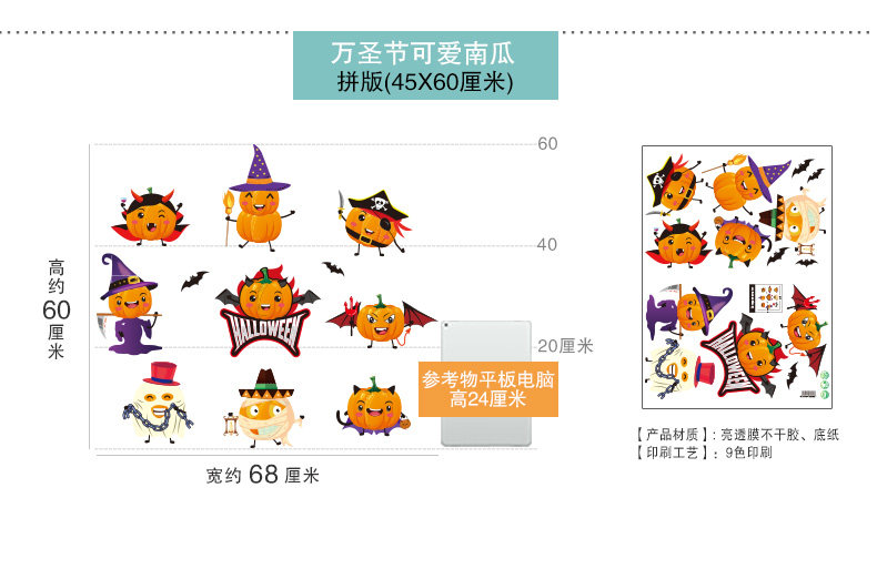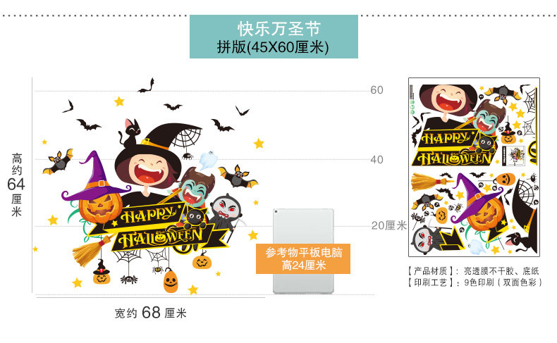 Тыквенный фонарь, стеклянная оконная наклейка, xэллоуин, наряжаться