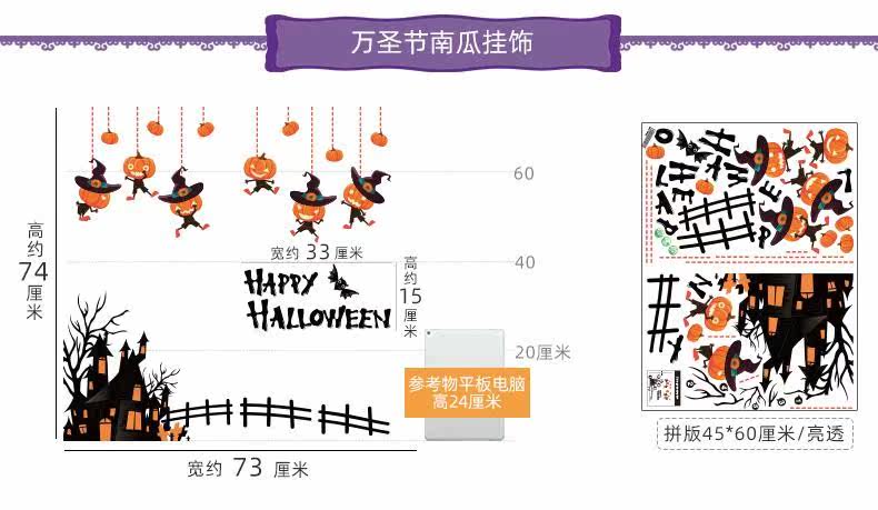 Наклейки на стену на Хэллоуин, декоративные наклейки на стеклянные двери в виде тыквы, наклейки на окна фестиваля, наклейки на окна, тема окна торгового центра, макет сцены