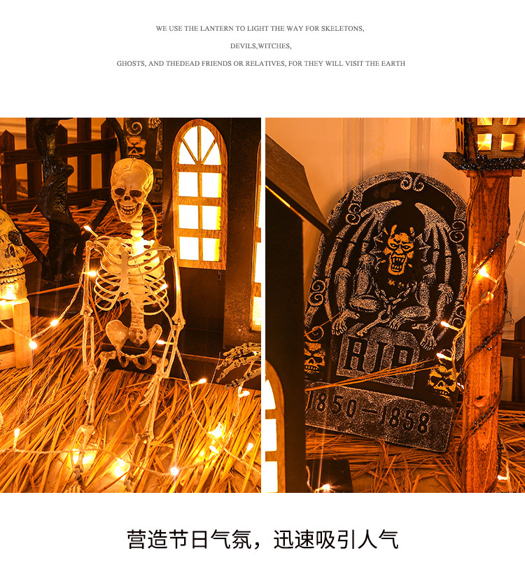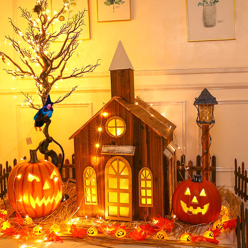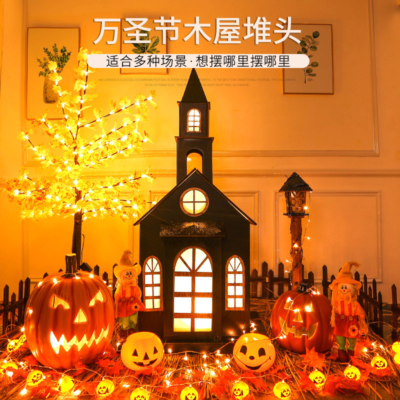Декоративные украшения Хэллоуина, большая куча тыкв, фонари, деревья-призраки, макет сцены торгового центра, тематические наборы, реквизит