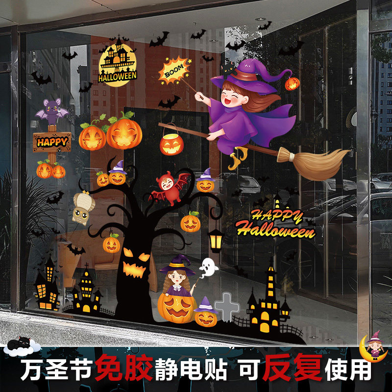 - 2. Хэллоуин ведьма и зомби [Статическое электричество бесплатно может быть повторно использовано]
