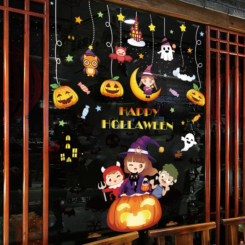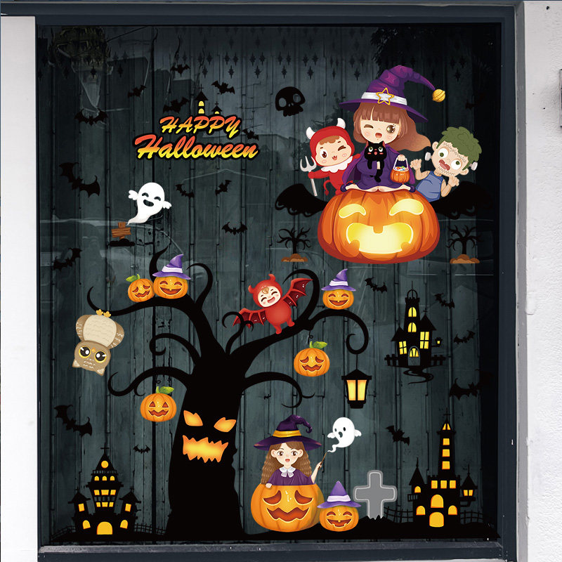 Стеклянная электрическая детская оконная наклейка, тыквенный фонарь для детского сада, xэллоуин