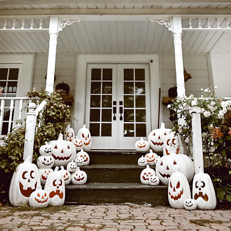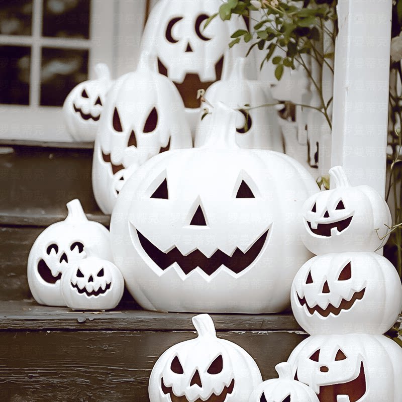 Белый дорожный тыквенный фонарь, новая коллекция, xэллоуин, ручная роспись