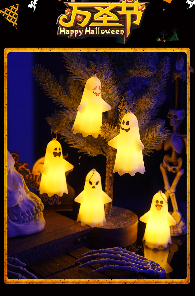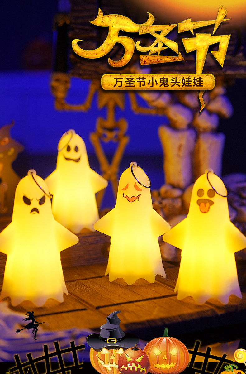 Портативный тыквенный фонарь, белая голова куклы, призрачный ночник, xэллоуин