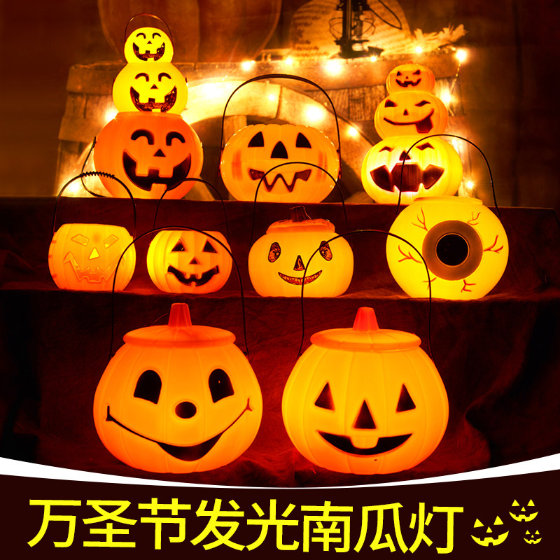 Хэллоуин тыквенный фонарь светящийся детский портативный фонарь с крышкой ведро тыквы макет сцены реквизит декоративные принадлежности