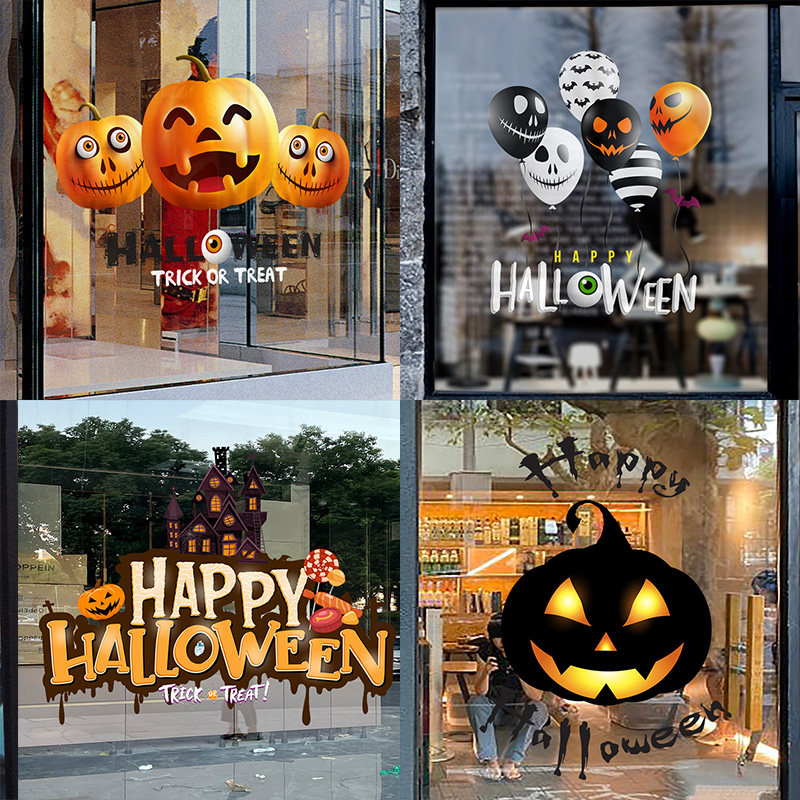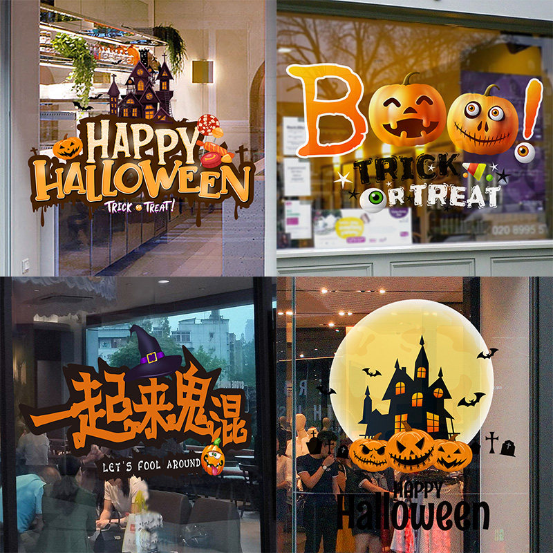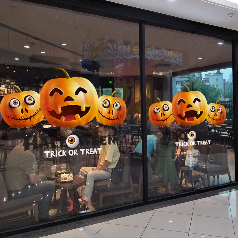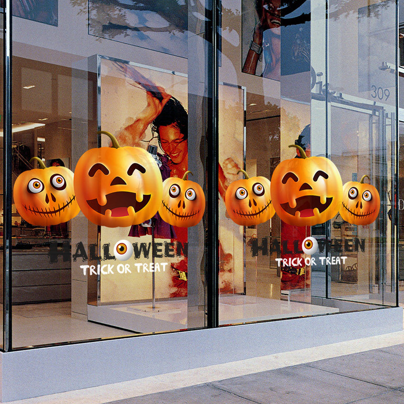 Атмосферный стеклянный тыквенный фонарь, наклейка, xэллоуин, наряжаться