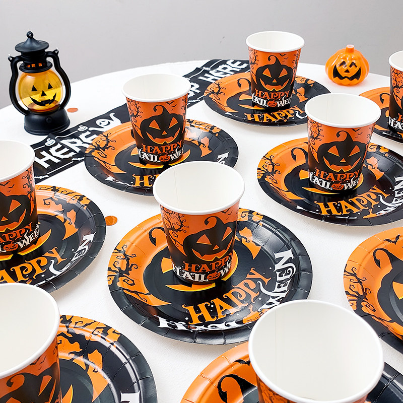 Одноразовая посуда, комплект, салфетки, xэллоуин