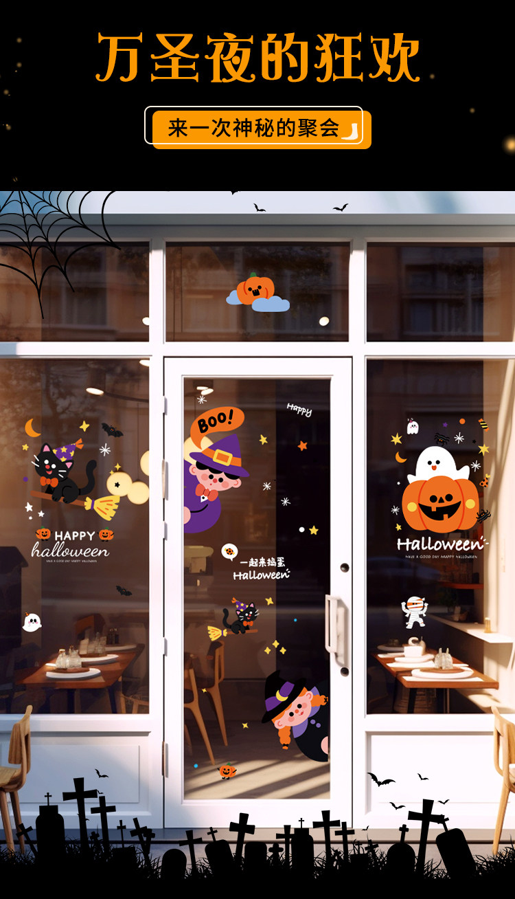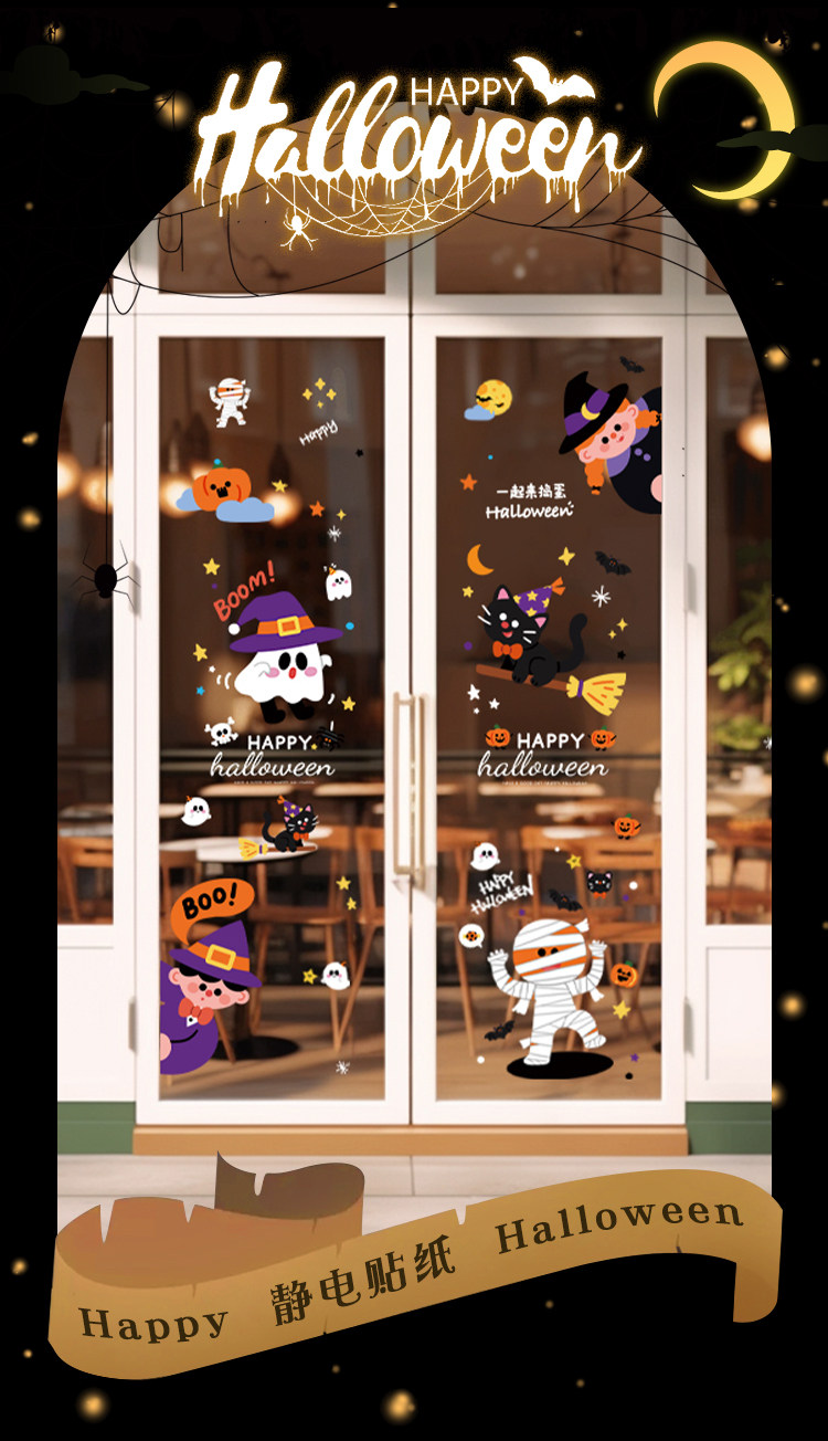 Атмосферный декор, электрическая стеклянная оконная наклейка, xэллоуин