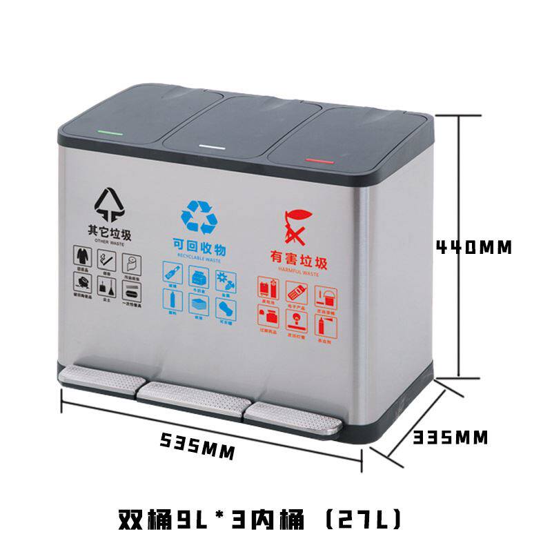 Большое мусорное ведро из нержавеющей стали с разделителями