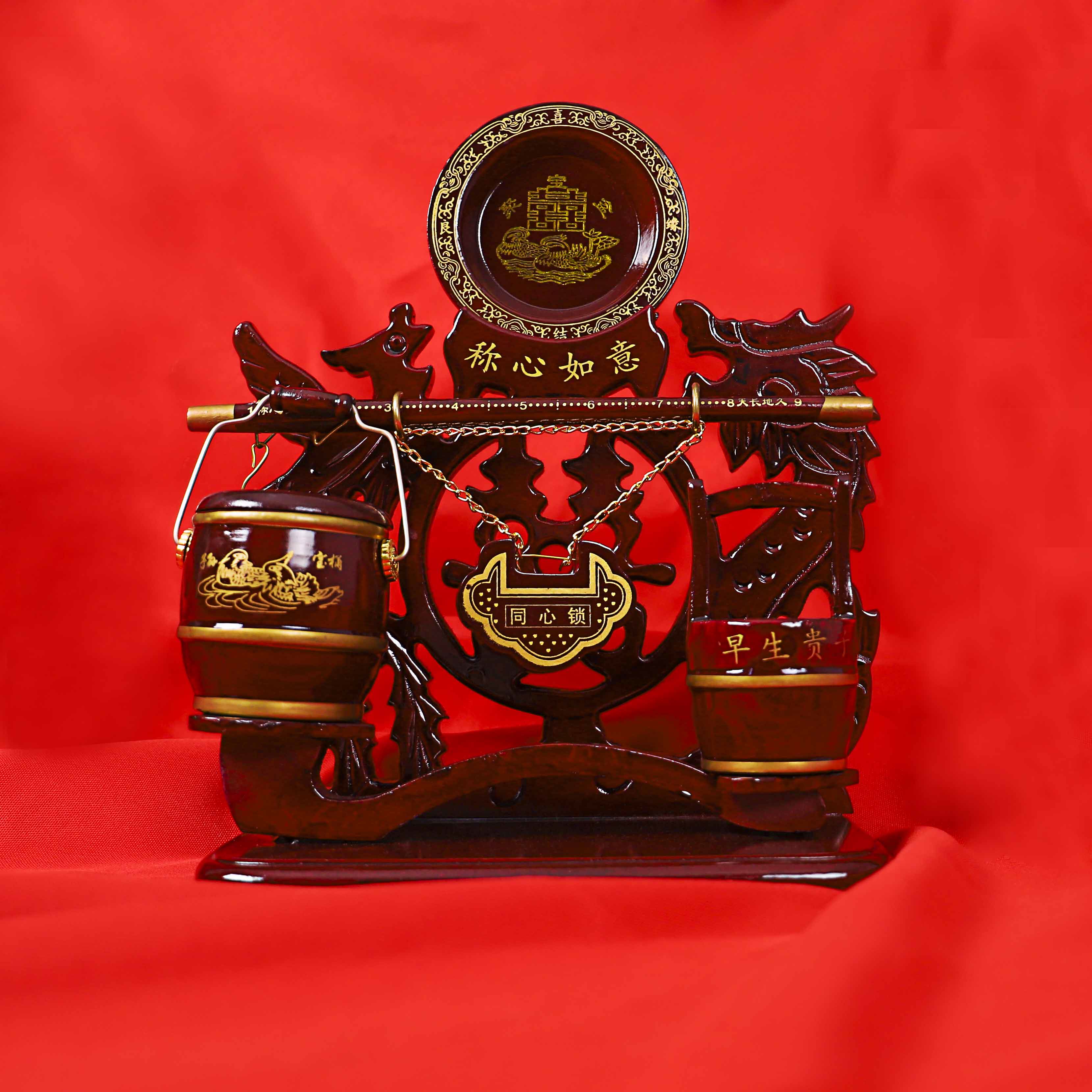 Свадебный свадебный свадебный набор для свадьбы называется Heart ruyi красное твердое дерево концентрическое сердце