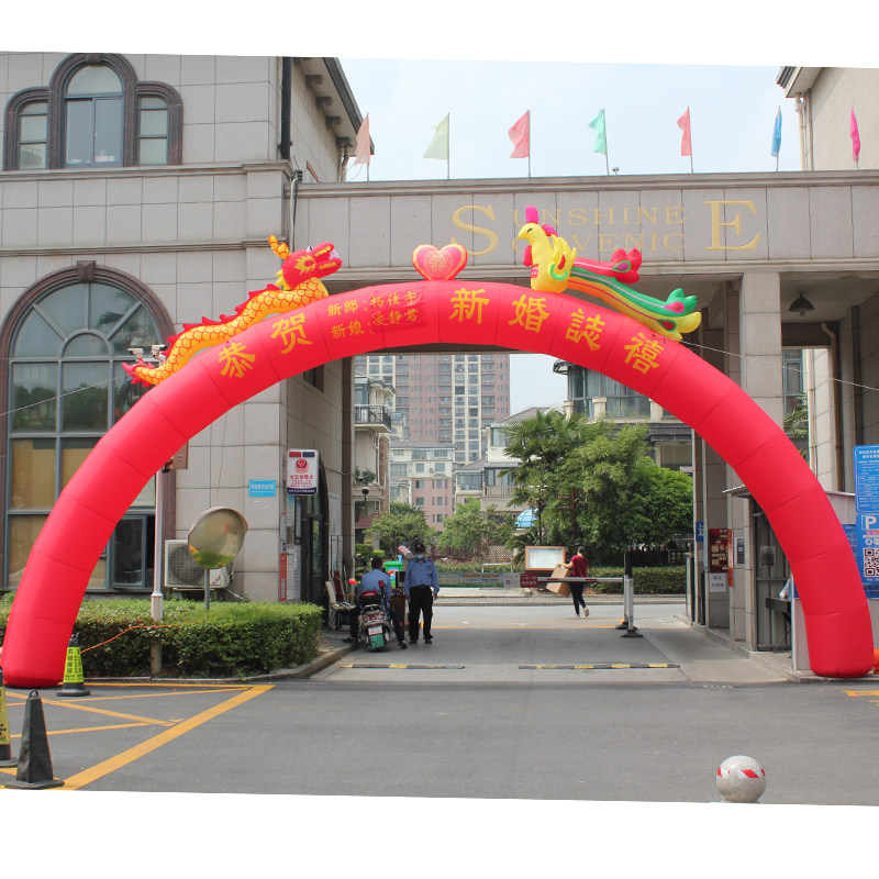 Свадебный надувной дракон и феникс фестиваль фестиваля Arch 8 метров 10 метров Rainbow Store празднует все вентиляторы Red Dragon Phoenix Arch