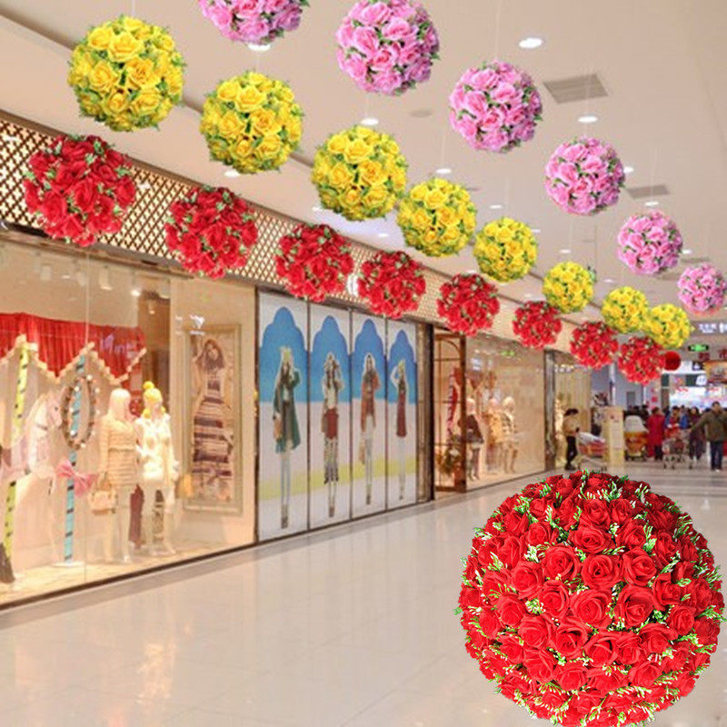 Розовая цветочный мяч Фальшивые цветы, полные звездного звездного шелковое цветочное мяч для свадебной дороги Цитаты праздновать отель 4S магазин магазин шоу декоративное цветочное мяч зал.