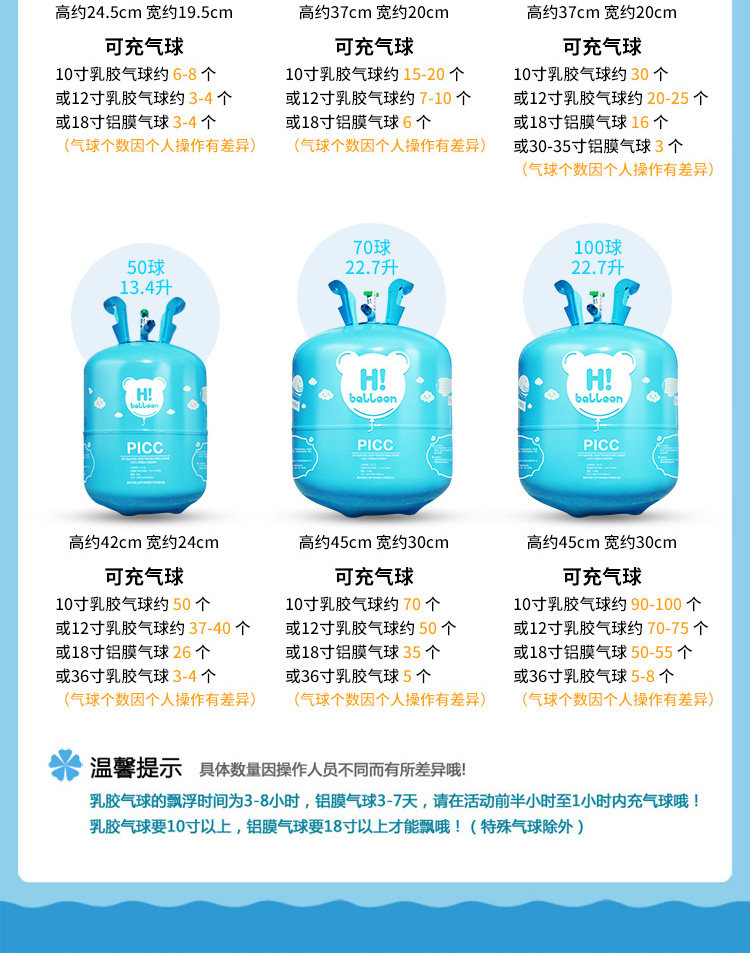 [注:乳胶气球充入氦气后漂浮时间为3-8小时。]