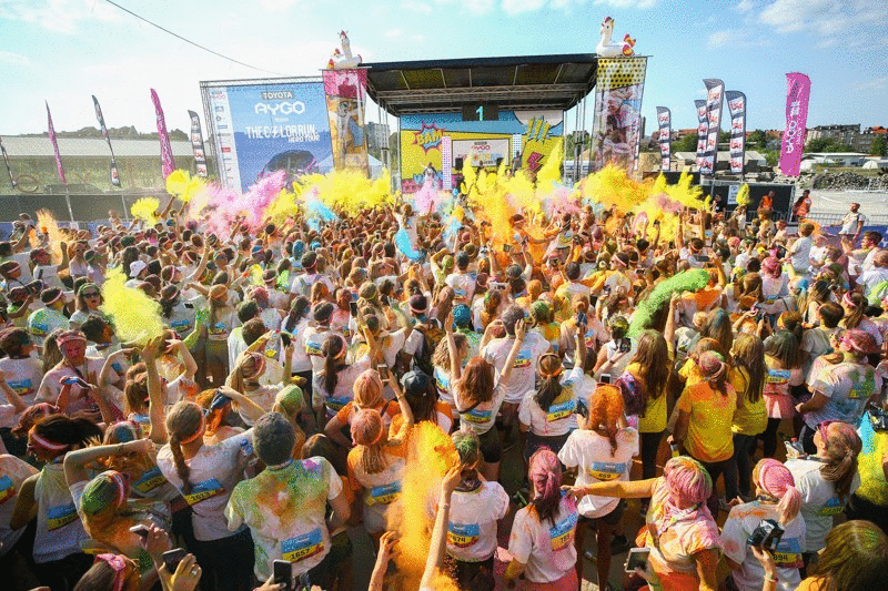Порошок цветного бега попадает в глаза и полость рта без раздражения, без вреда, питьевой воды и ополаскивания.