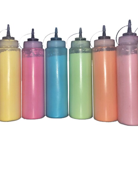 Цветовая пробежка бутылка из куски уличная еда радуга радужная вентилятор вентилятор сжимание бутылочки кукурузного крахмала распылитель спрей цвет