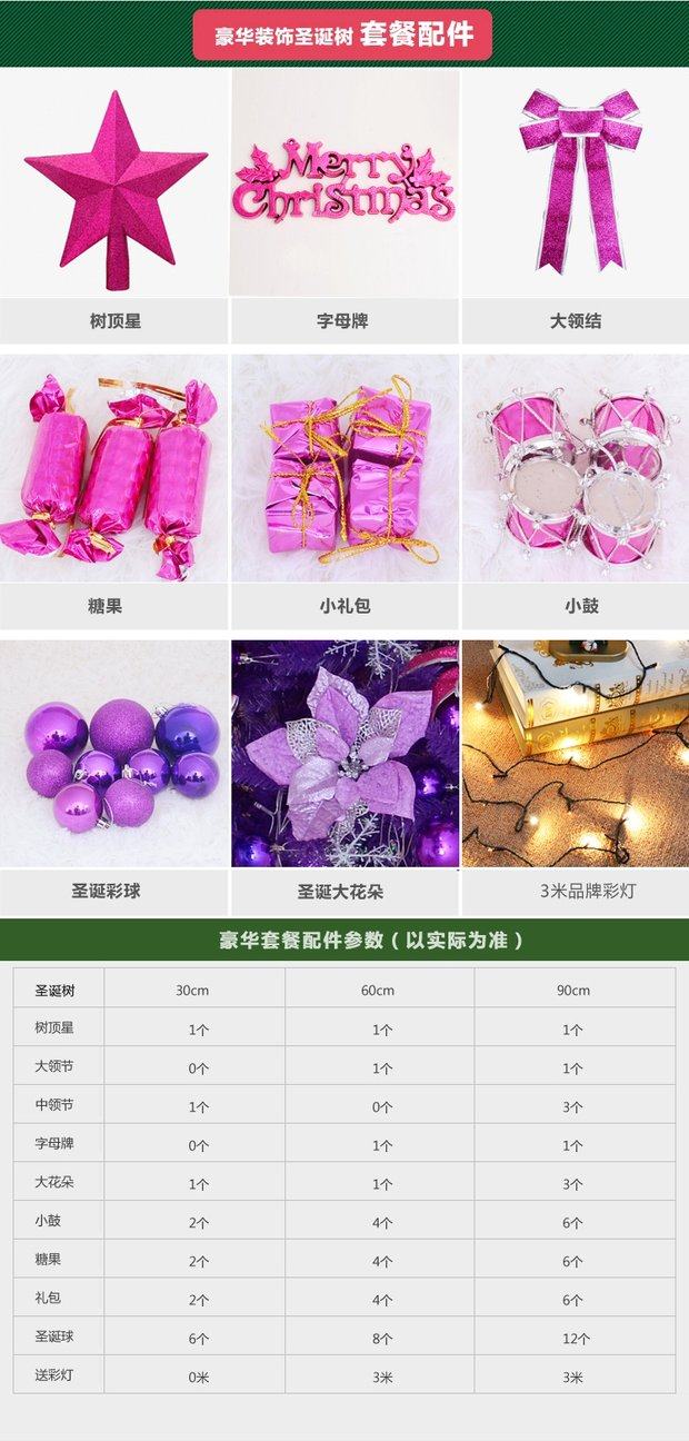 60 см сосновой иглы для рождественской елки роскошная роскошь 30 см 0,9 метра 1,2/1,5 метра/1,8 рабочие столы Маленькие мини -украшения