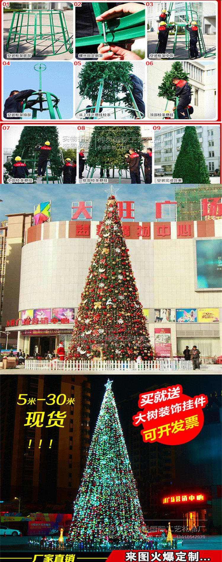 Большая рождественская елка украшена на 4 метра, 5 метров, 6 метров, 7 метров, 8 метров, 9 метров, 10 метров, 12 метров, 12 метров, 12 метров, 15 метров на открытом воздухе светящейся рождественской елки