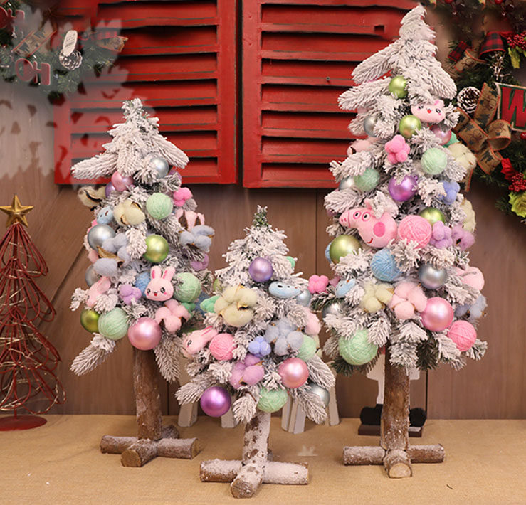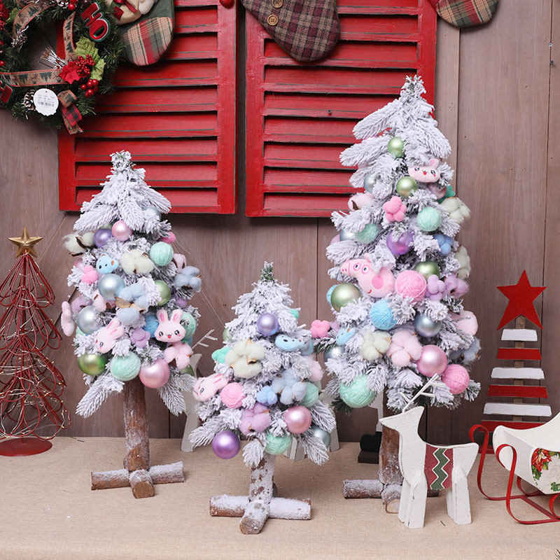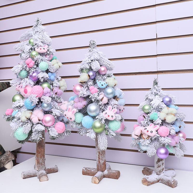 Розовая мини -рождественская елка украшения оконные торговые центры украшение бархатной рождественской елки содержит висящие украшения