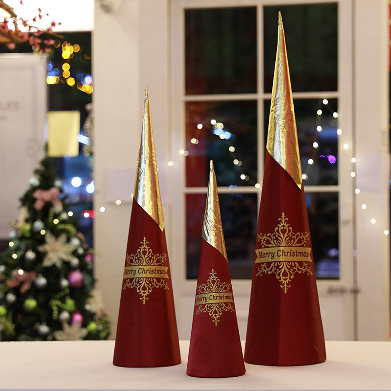 Рождественский шпиль елки, набор из трех частей, золотые и красные елочные украшения, креативная витрина, рождественское украшение, елочная композиция